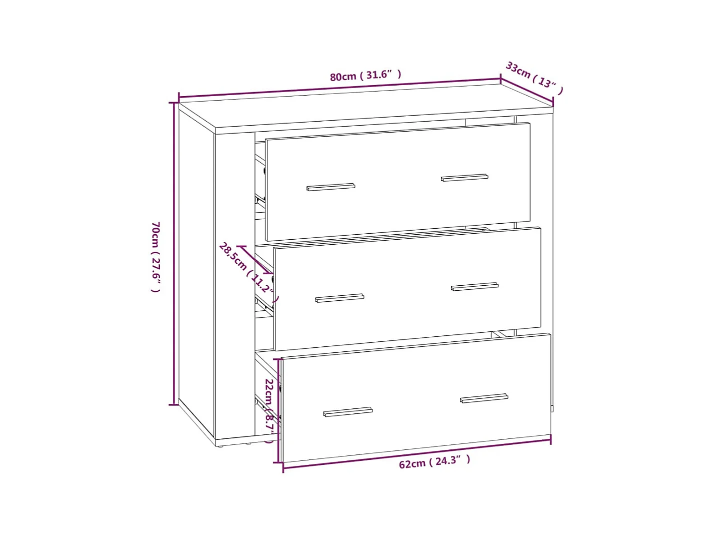 Aparador madera de ingeniería roble artisan 80x33x70 cm