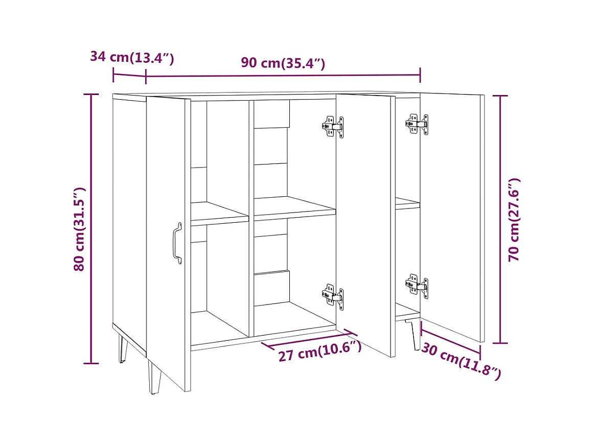 Aparador buffet cómoda mueble almacenaje organizador cocina salón salón Sonoma 90 x 34 x 80 cm madera contrachapada marrón 02_0031732