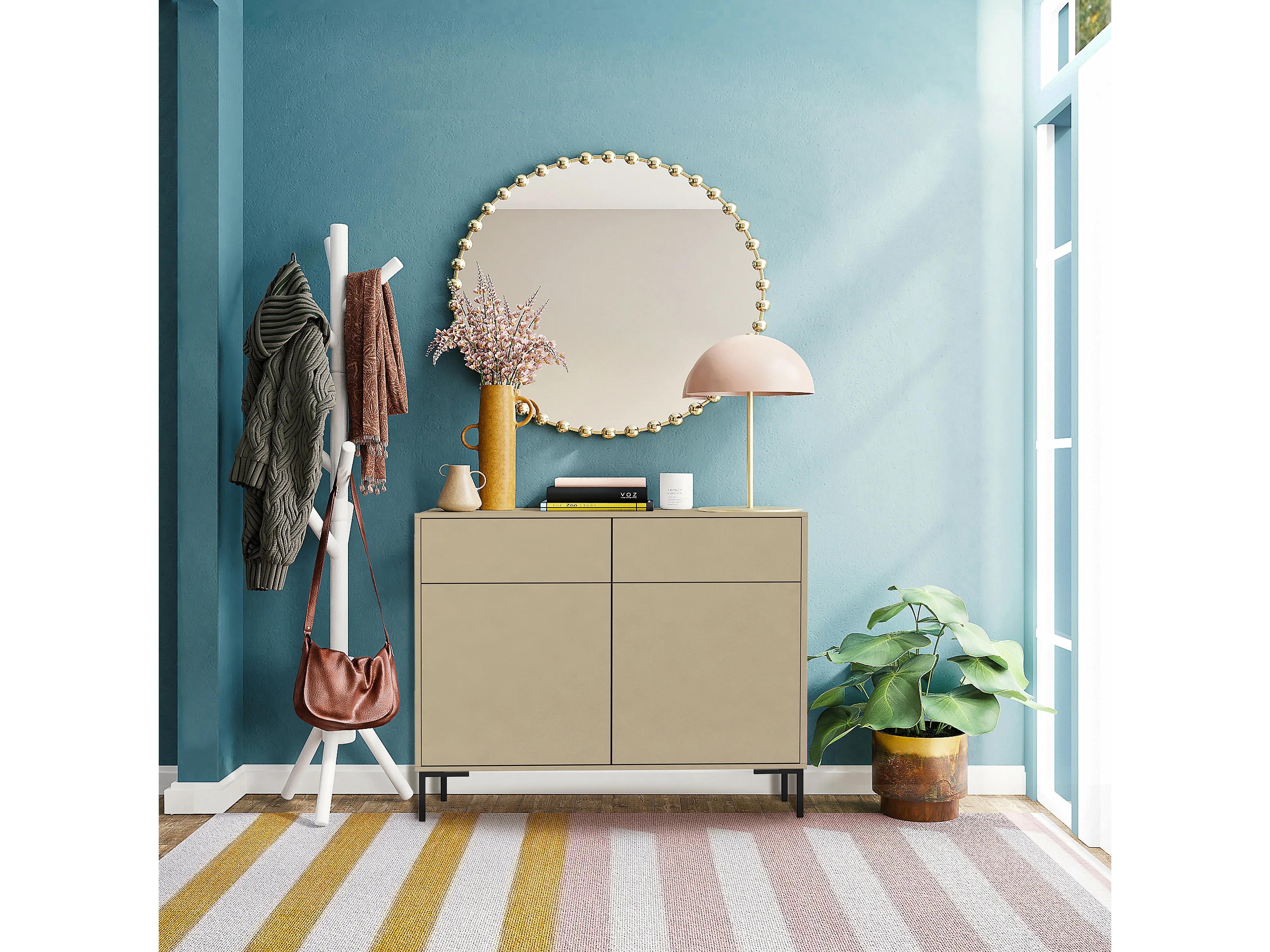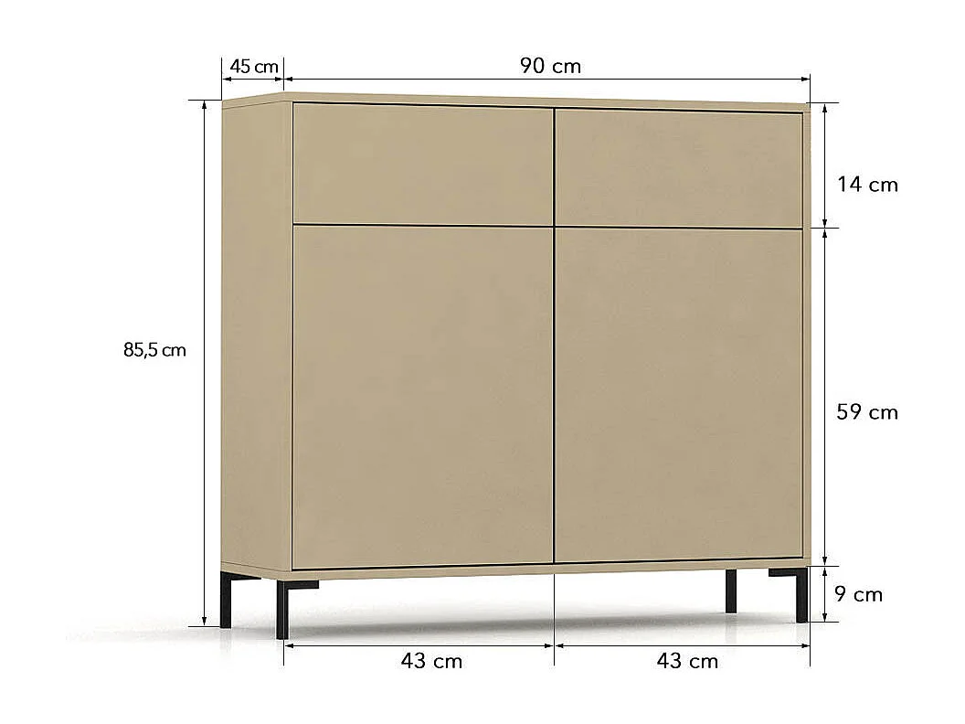 Aparador con 2 cajones y 2 puertas en melamina color topo