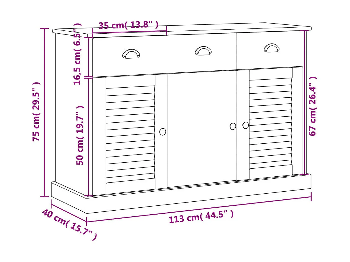 Aparador con cajones VIGO madera maciza pino 113x40x75 cm
