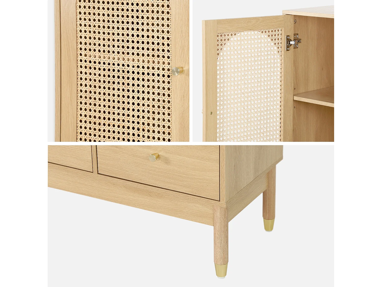 Aparador con decoración de madera y mimbre 1 puerta, 75cm natural