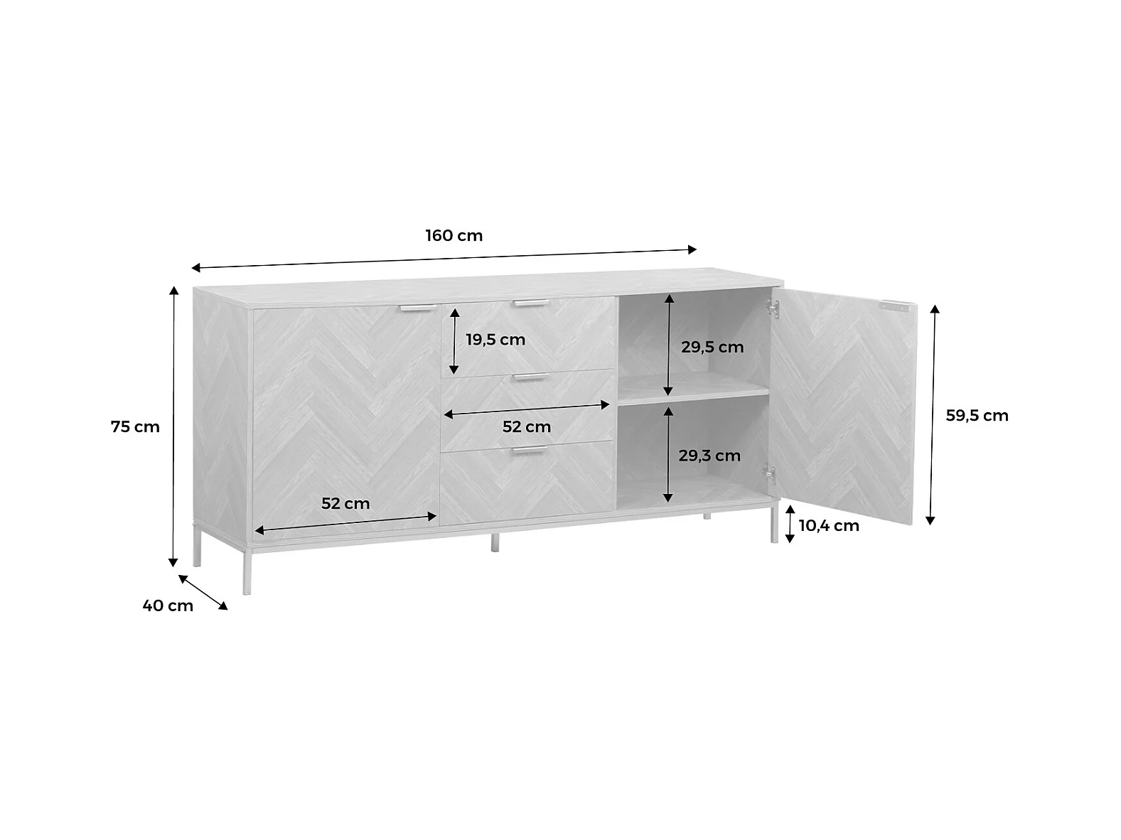 Aparador con efecto espiga de 2 puertas, 160cm natural
