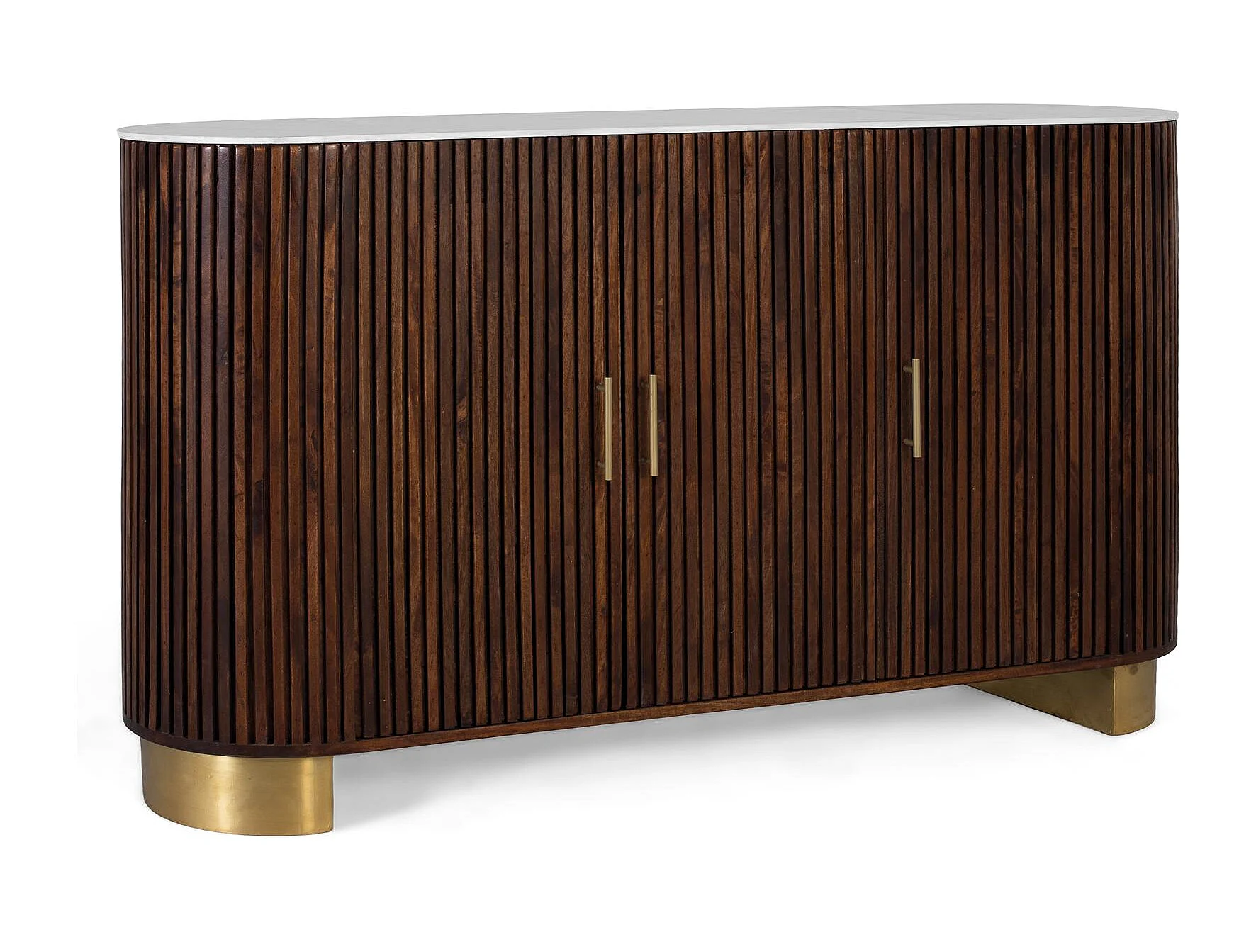 Aparador con laterales curvos en madera de mango color nogal 150 cm