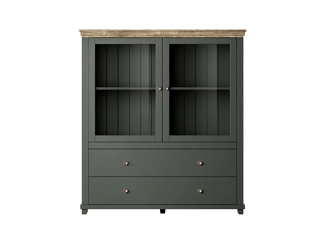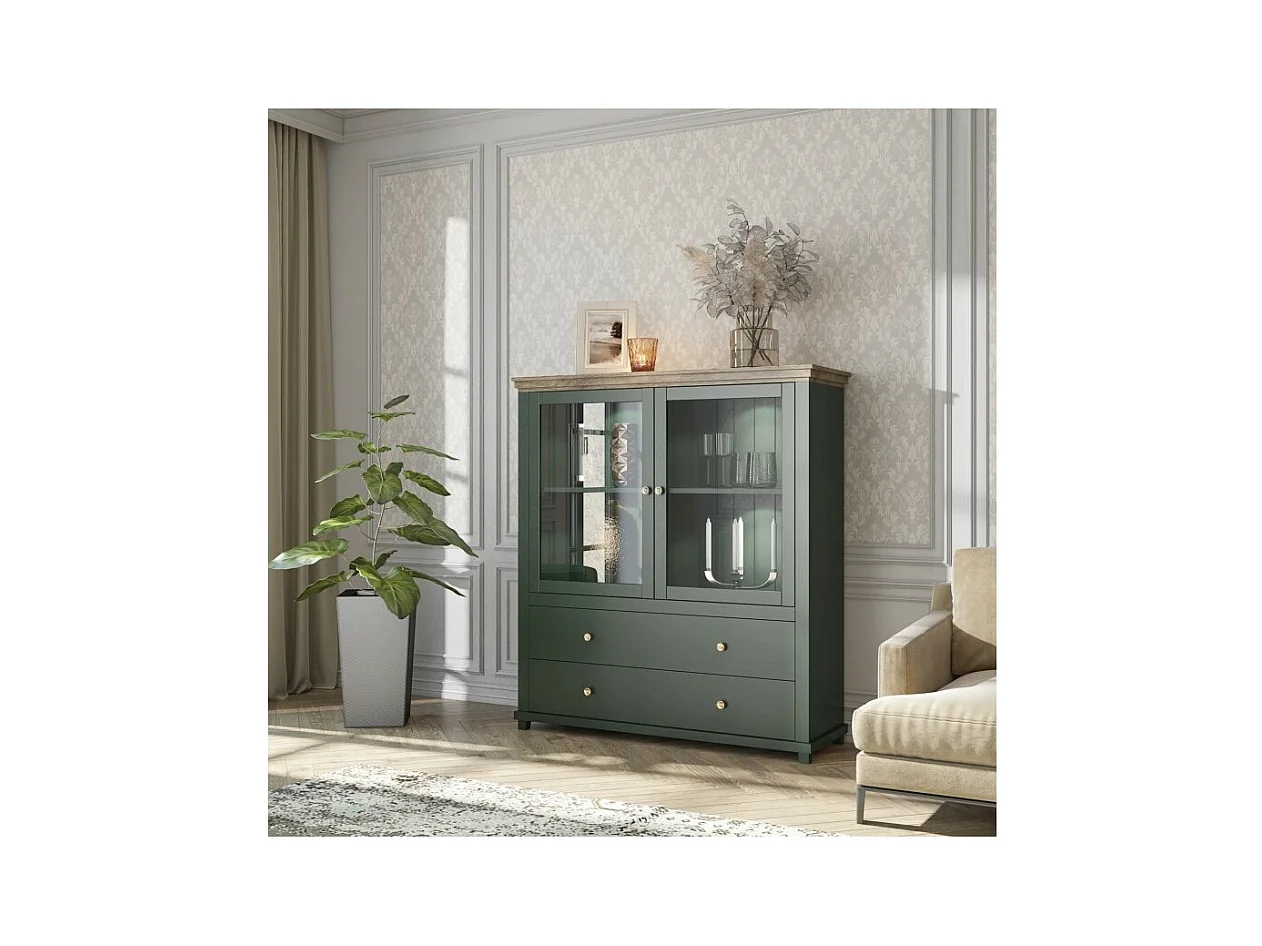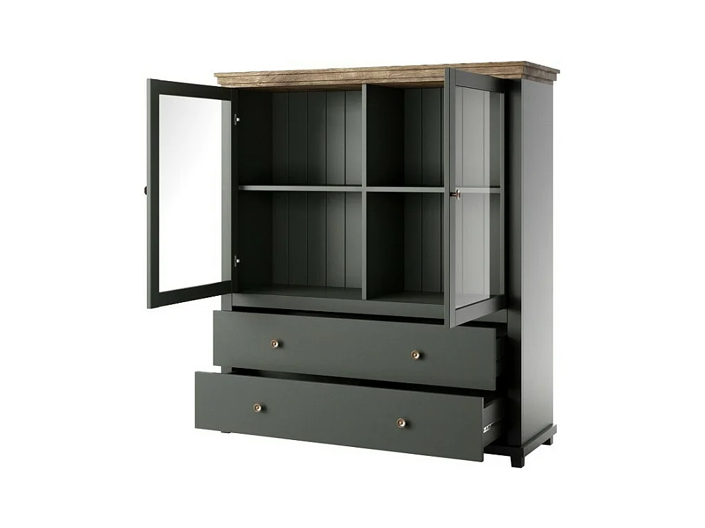 Aparador con LED integrados colección ASSIA. Color verde y roble. 2 Puertas y 2 Cajones.
