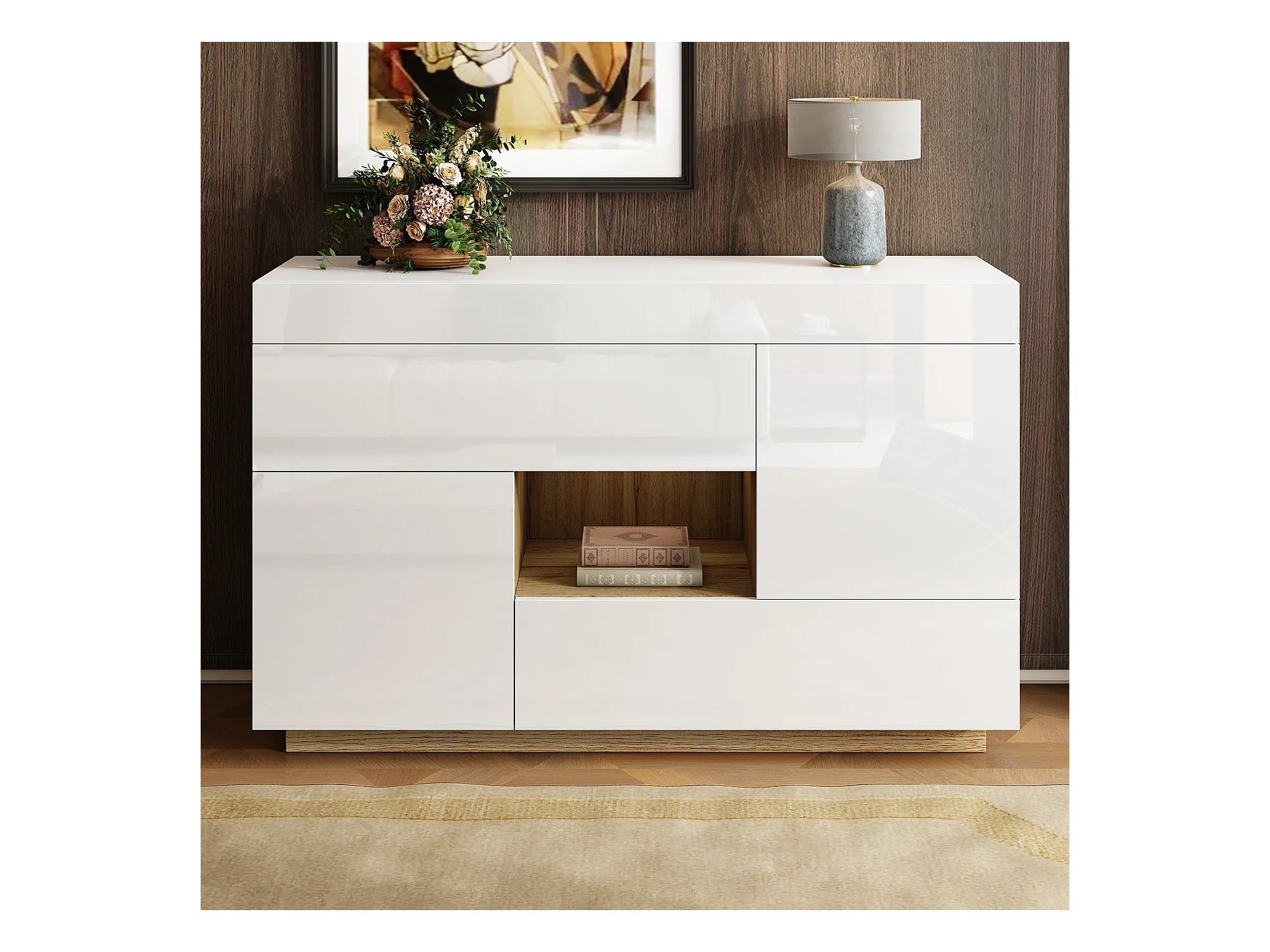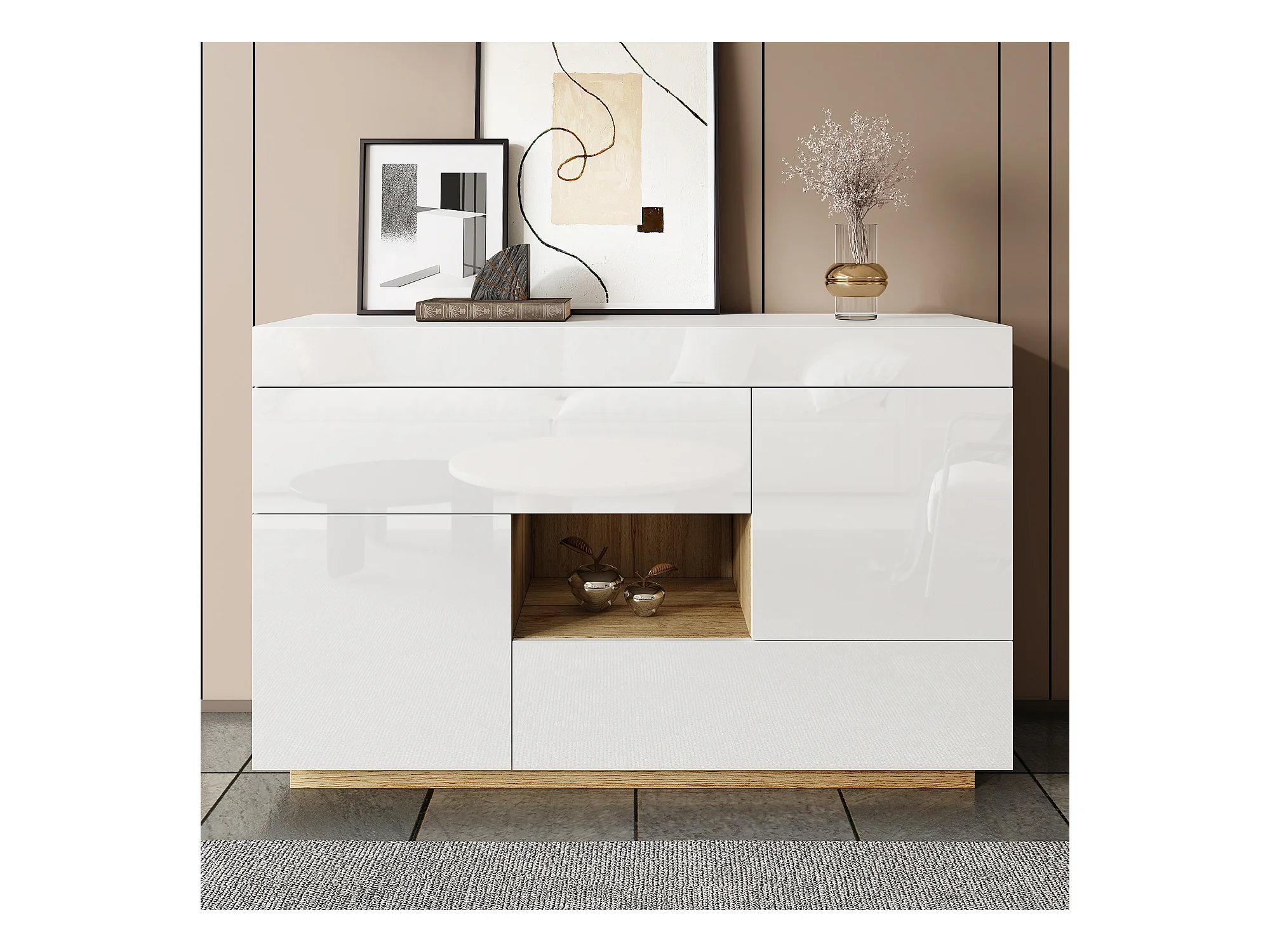 Aparador con LEDs multicolor, diseño lacado, con 2 puertas y 2 cajones, tablero de partículas, blanco (120x76,5x35 cm)