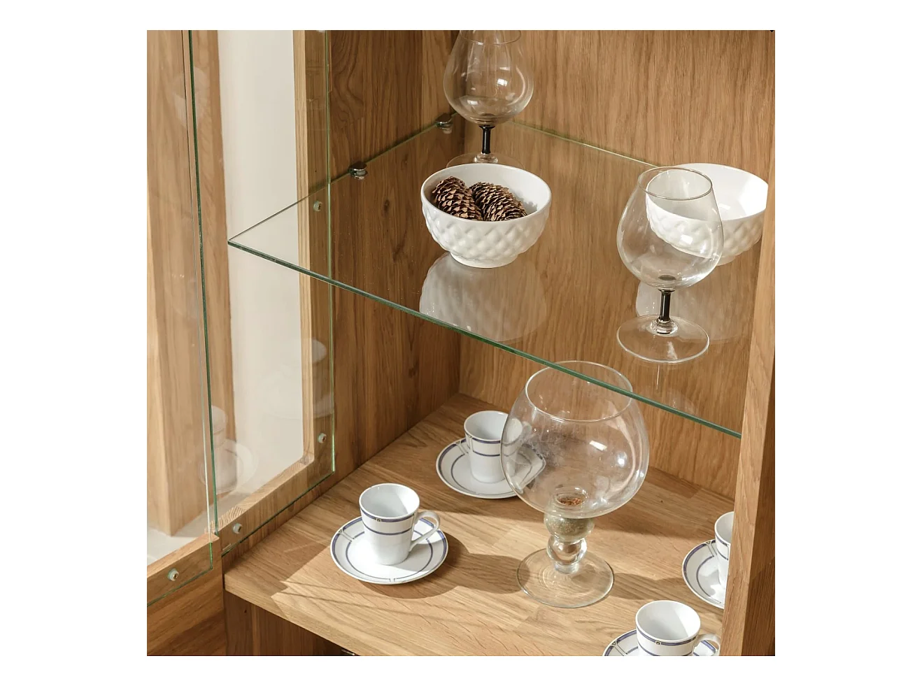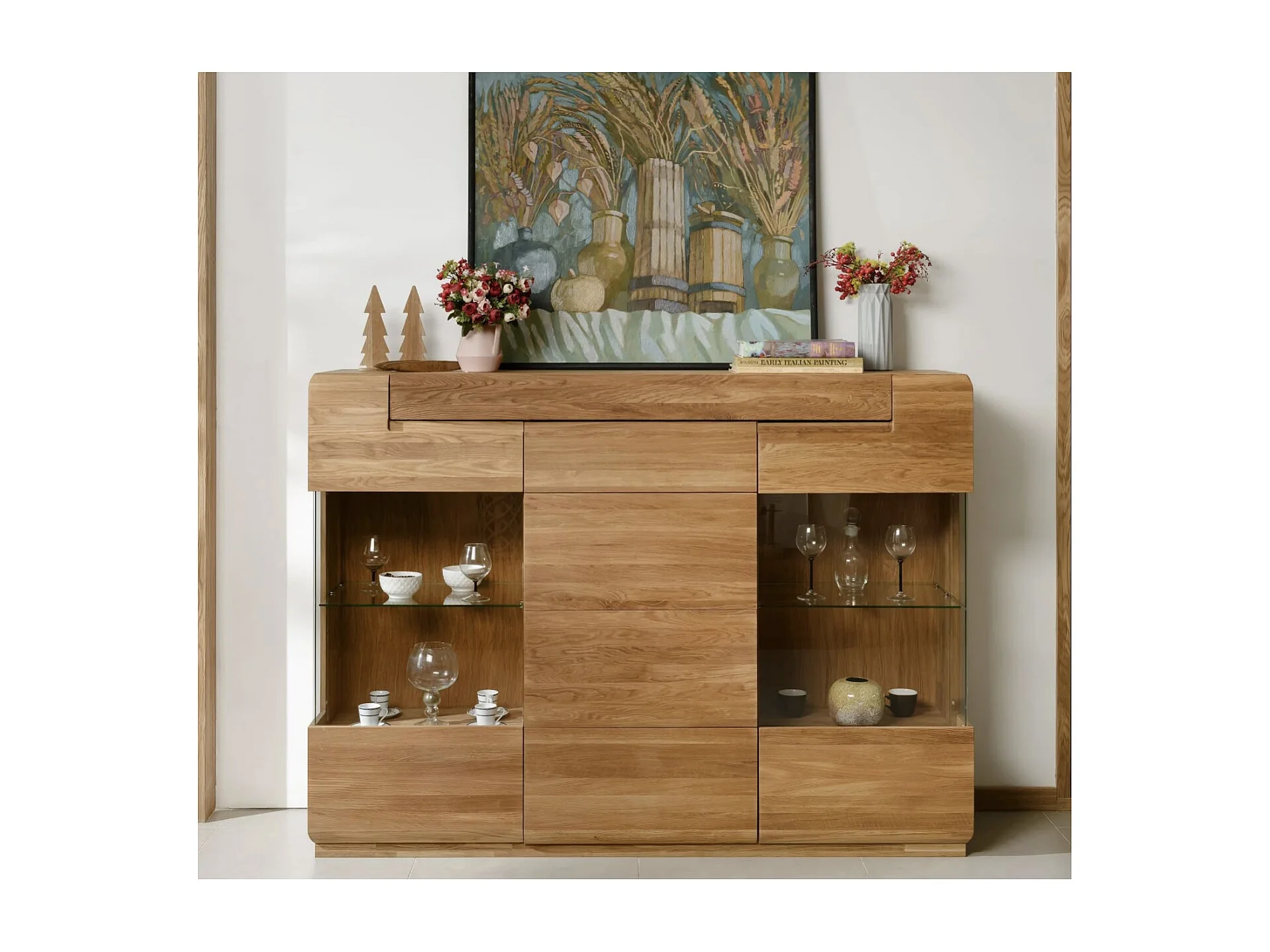 Aparador con expositor en madera maciza de roble miel Divina 100 cm
