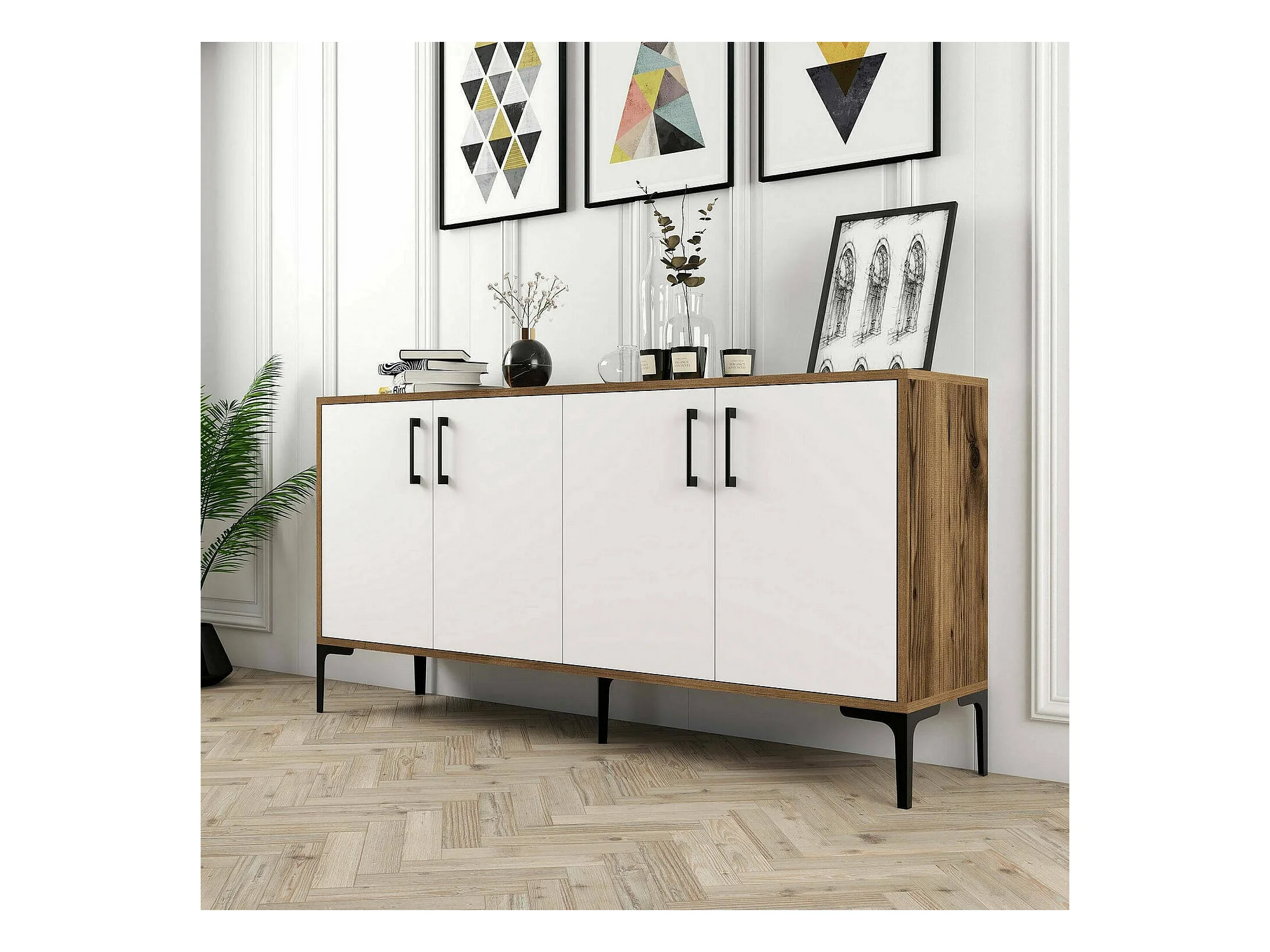 Aparador Daltobell, Bufé de salón, Aparador de salón, Despensa de cocina, 160x35h78 cm, Nogal y Blanco