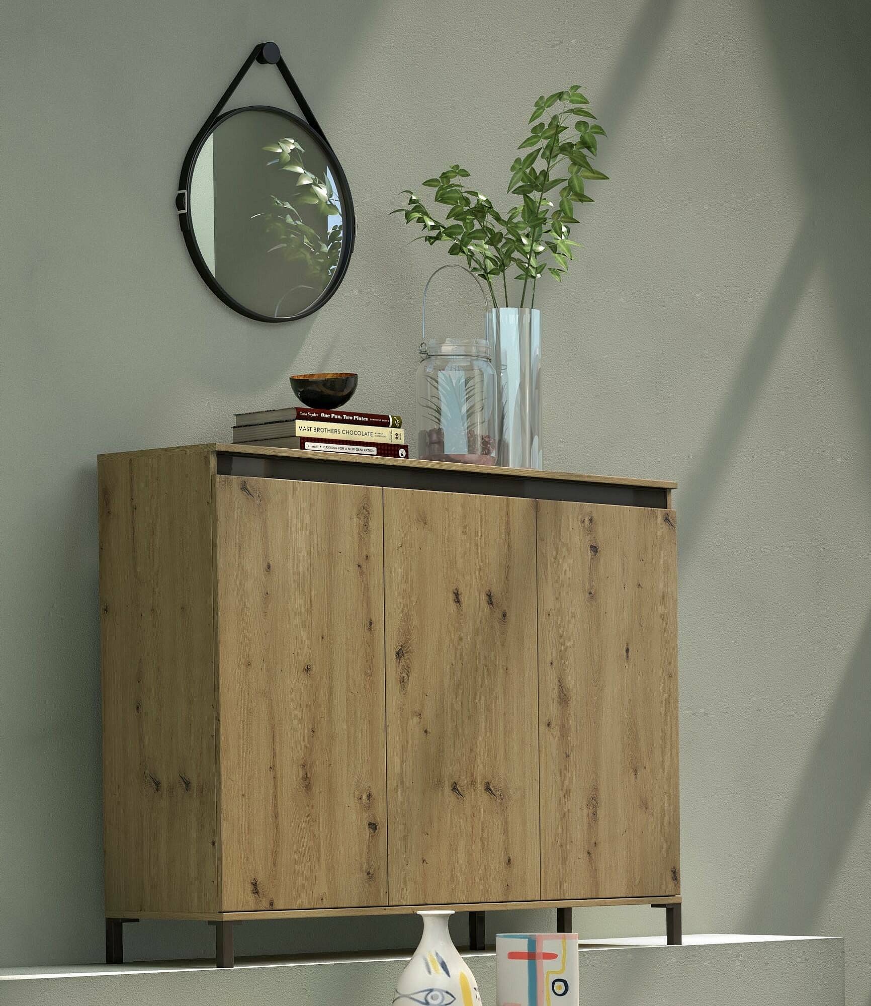 Aparador Dceppitell, Bufé de salón, Aparador de salón, Despensa de cocina, Made in Italy, 138x110h40 cm, Blanco brillante y Antracita