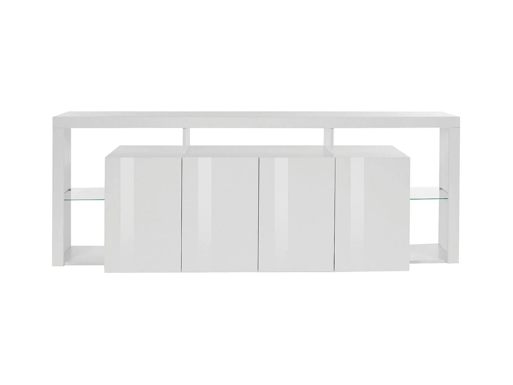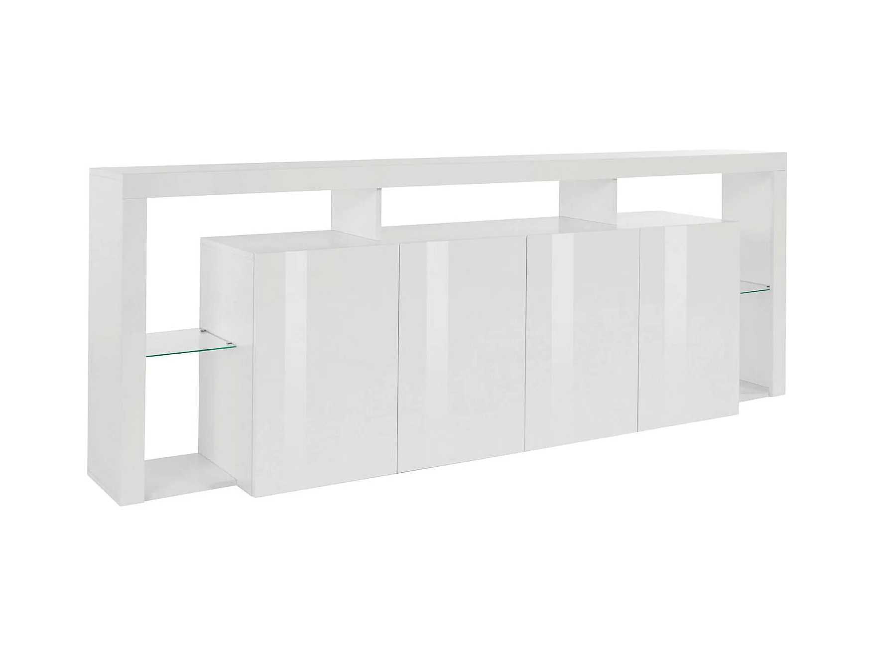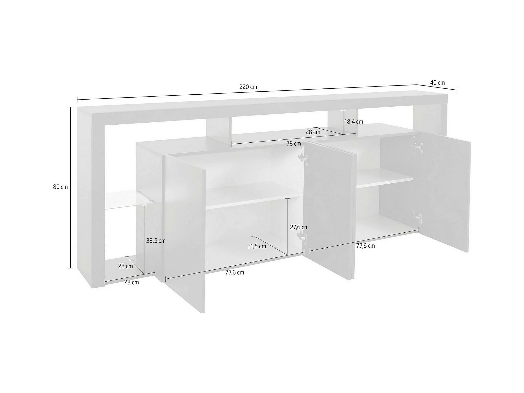 Aparador Ddalessandr, buffet de salón 4 puertas, Aparador de salón, Aparador moderno, 100% Made in Italy, 220x40h80 cm, Blanco brillo