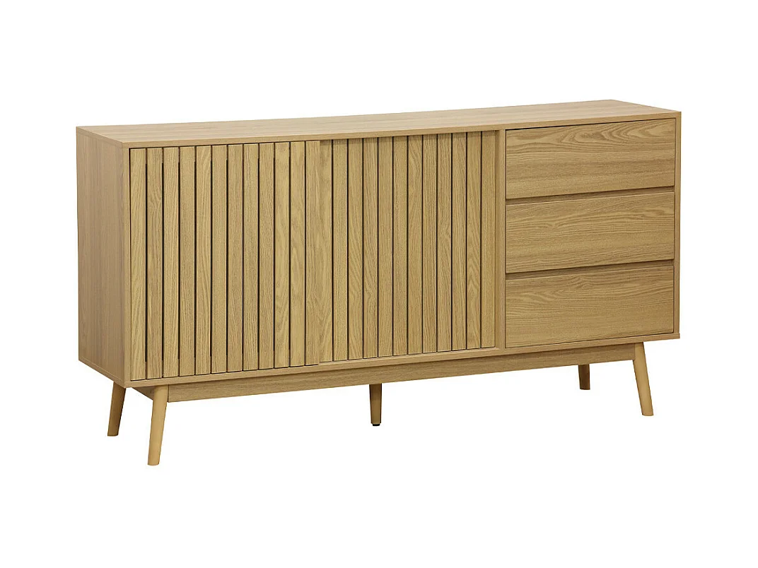 Aparador moderno - 140 x 40 x 80 cm - con 3 cajones + 2 puertas - aspecto madera - MDF - natural