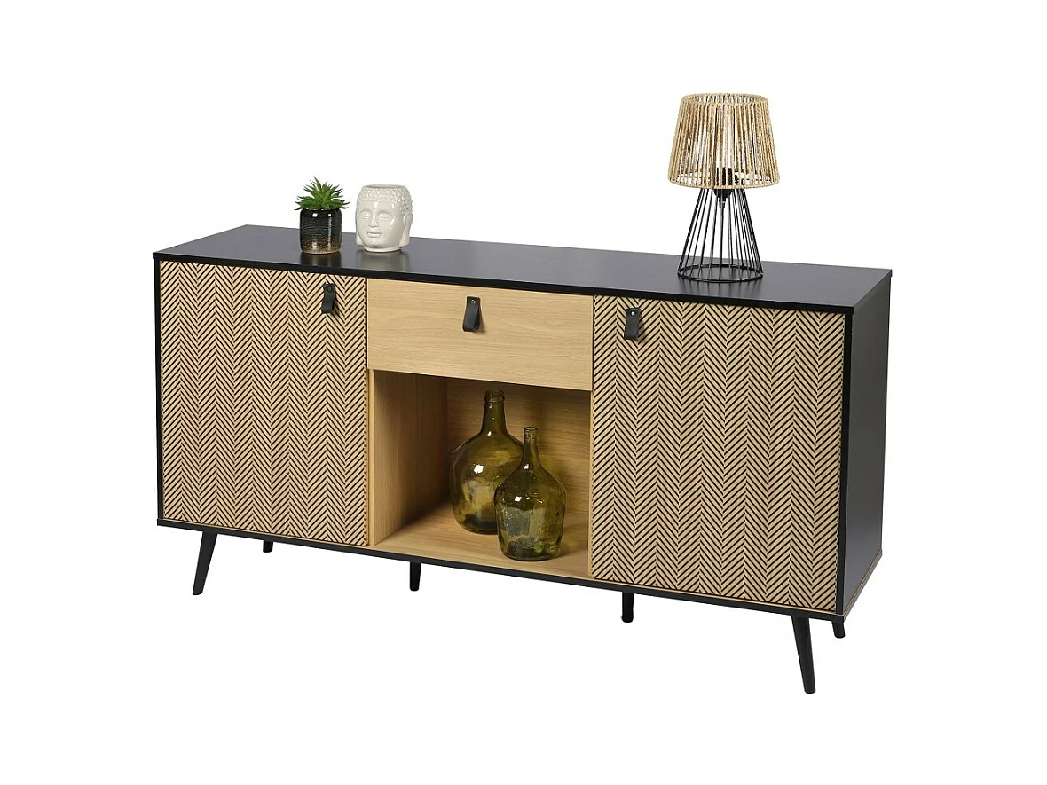 Buffet 120cm coloris chêne et noir collection HAVANA. Aparador de diseño con 2 puertas y 2 cajones.