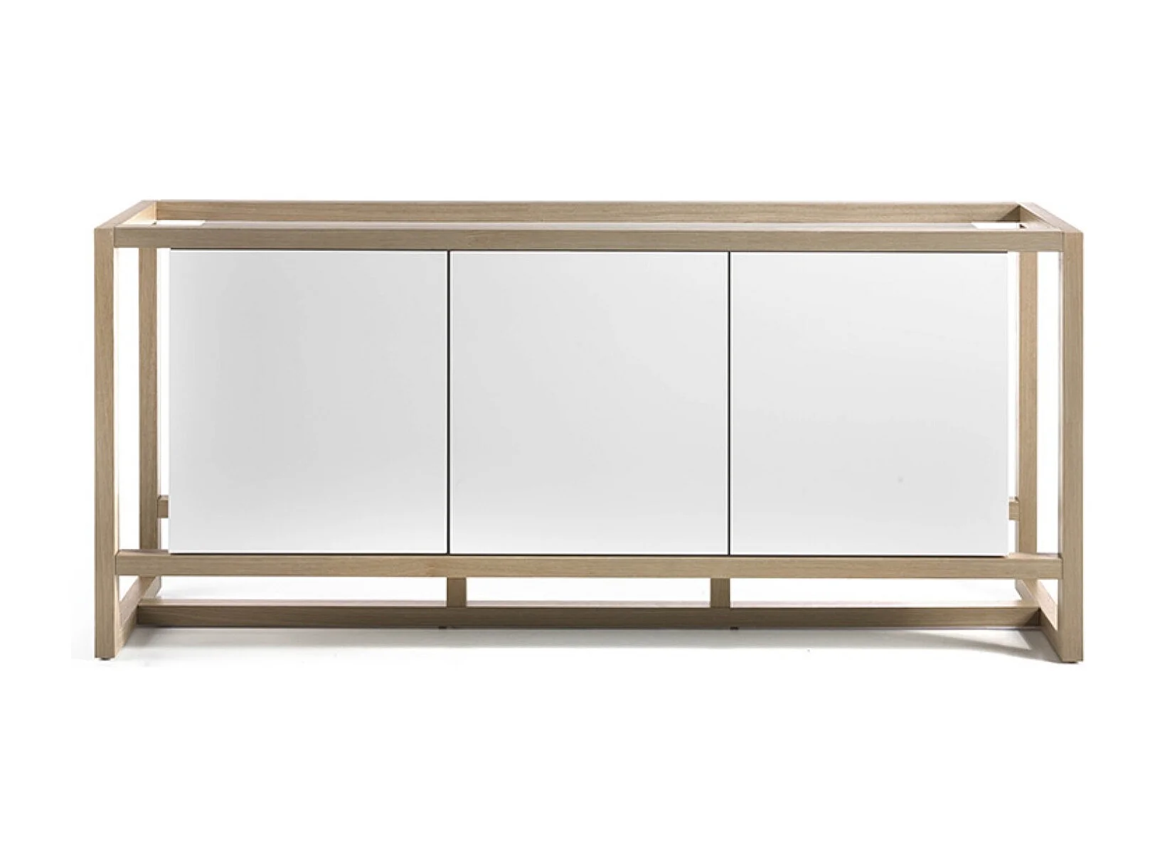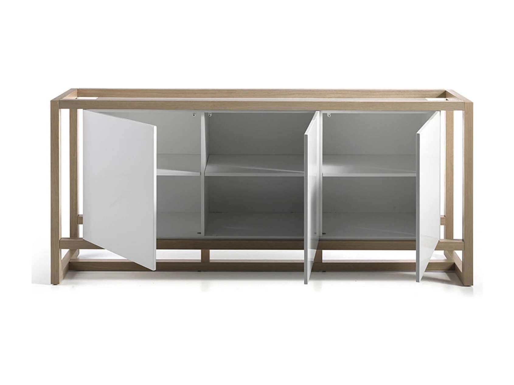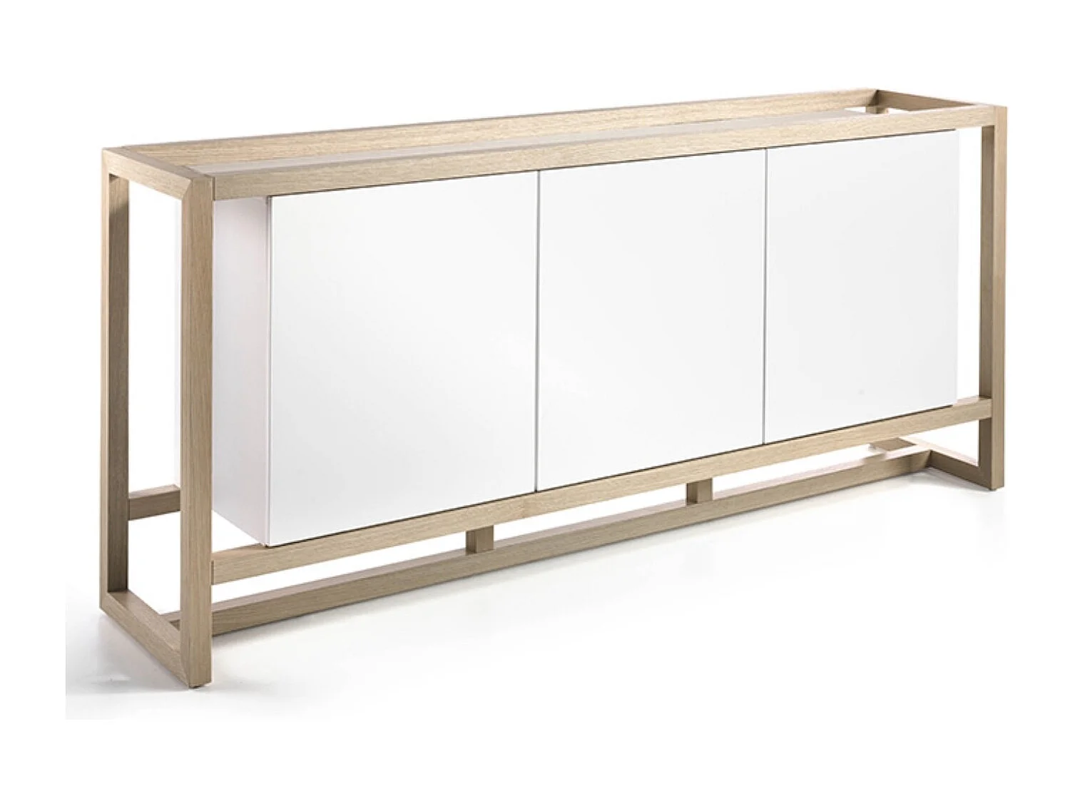 Aparador de 3 puertas de madera lacada en blanco y haya natural Valeto 195 cm