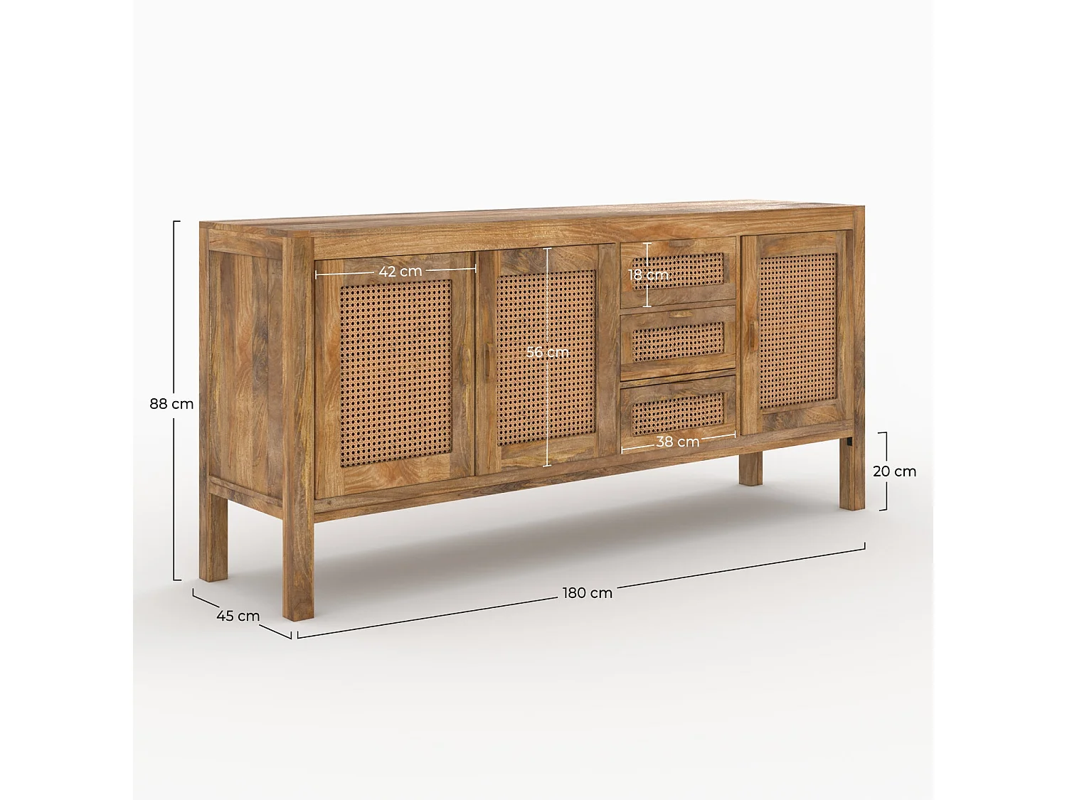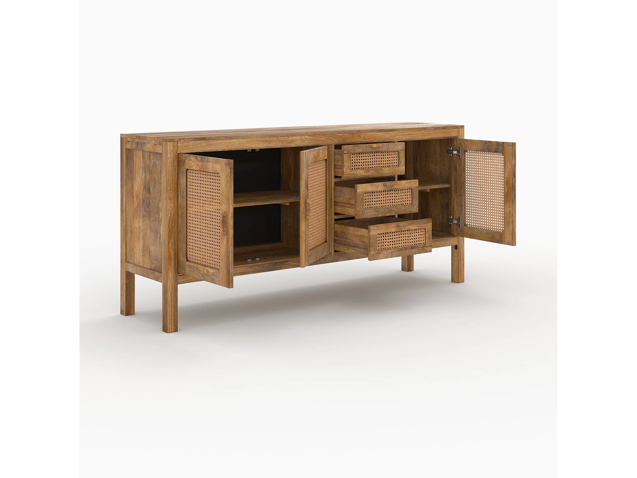 Aparador de 3 puertas y 3 cajones en caña - Tiki