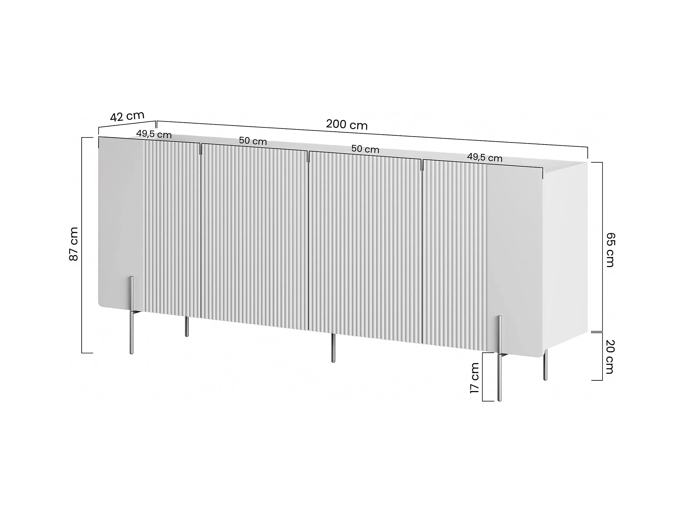 Aparador de 4 puertas con pie de metal cachemir 200x87 cm