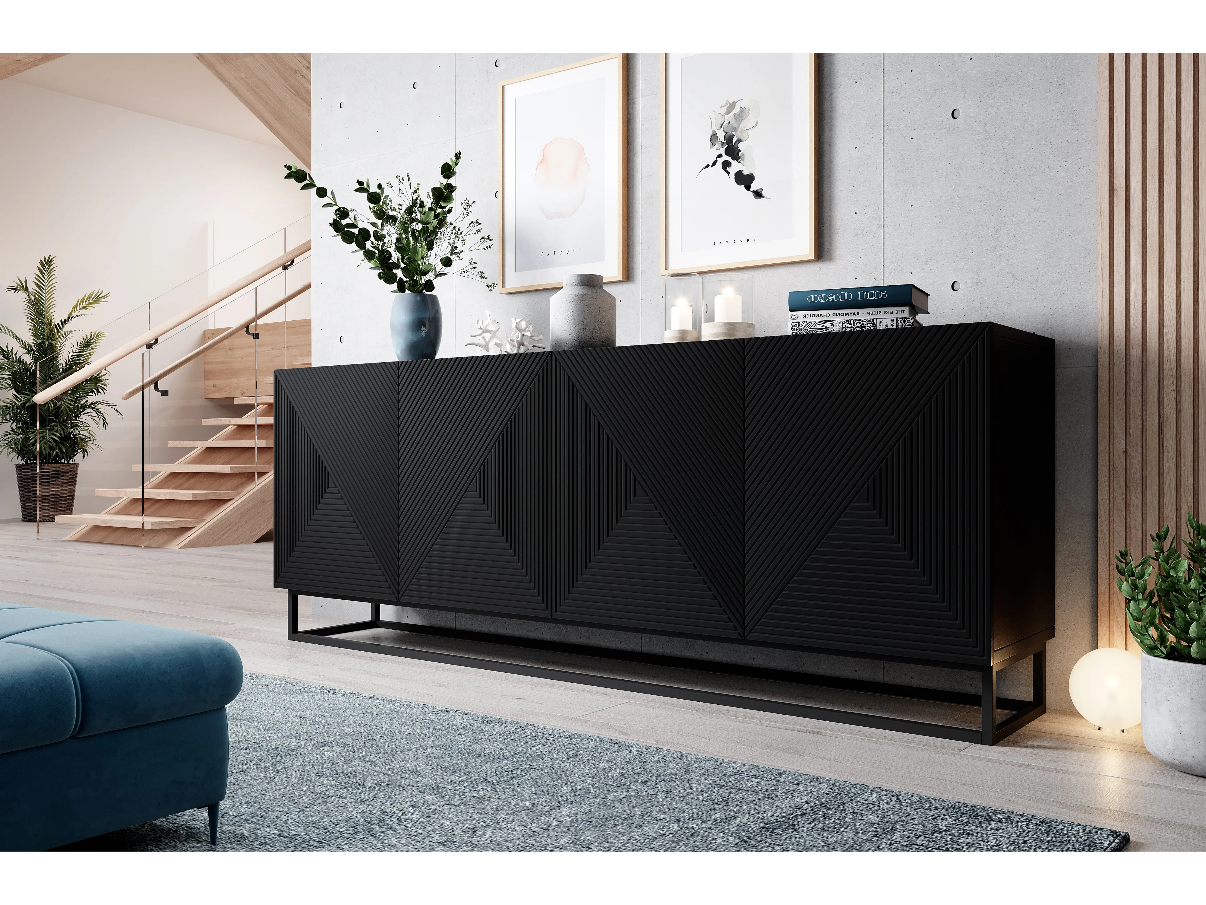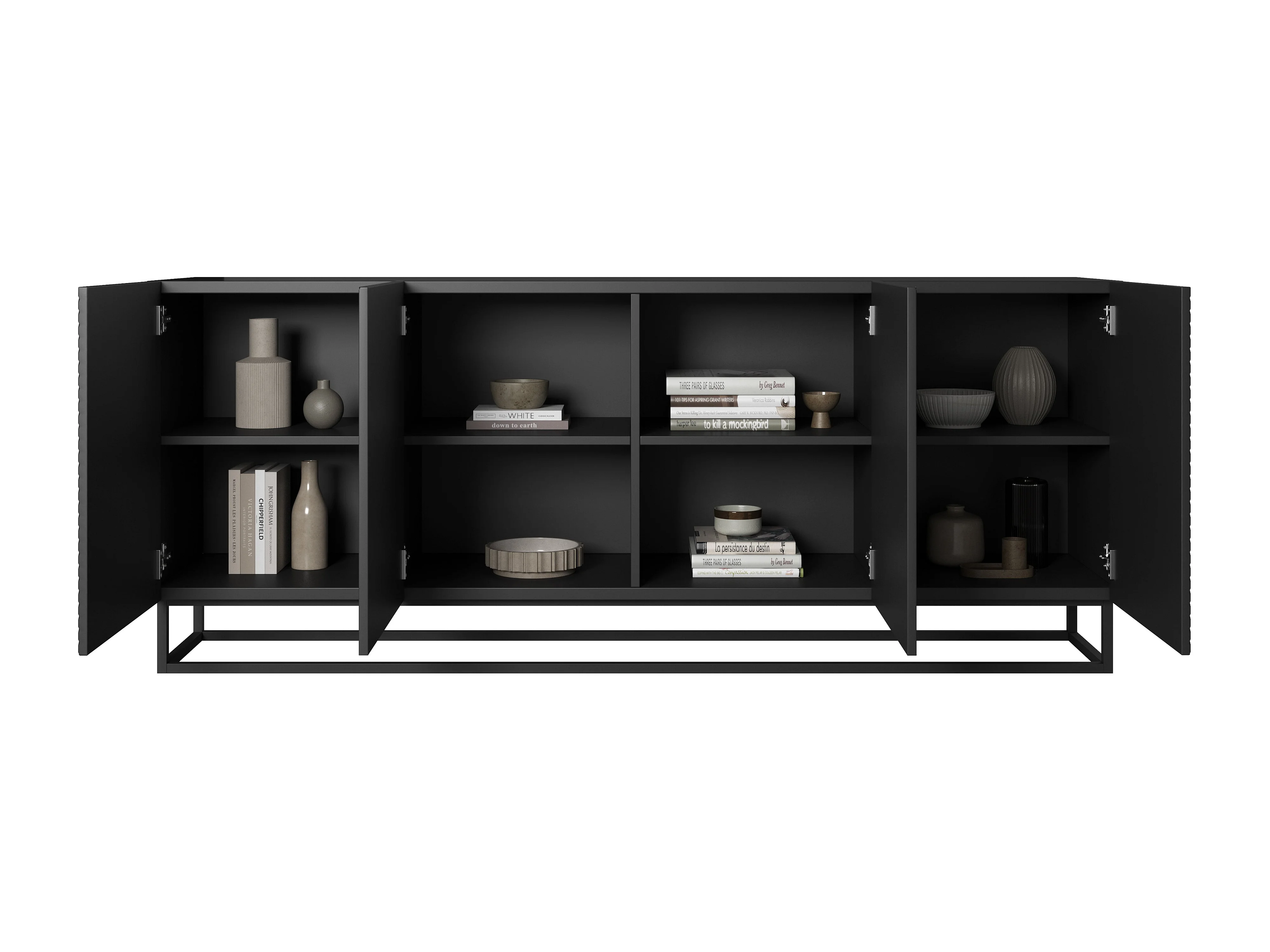 Aparador de 4 puertas de madera laminada negra con pie de metal 200x43 cm