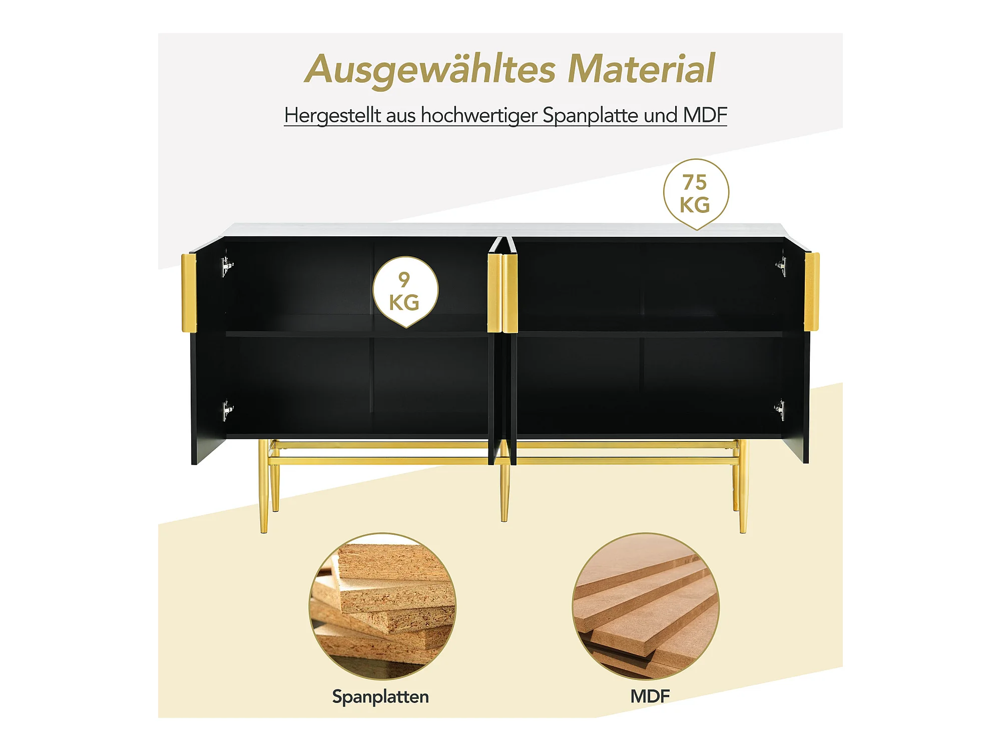 Aparador de 4 puertas de MDF y metal con tiradores dorados para salón comedor negro
