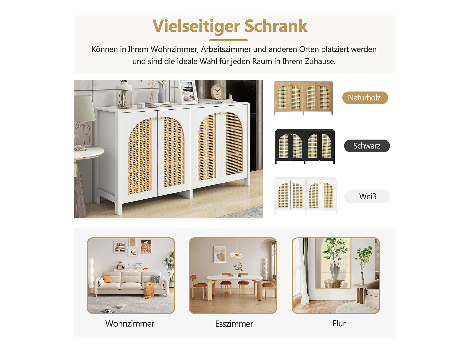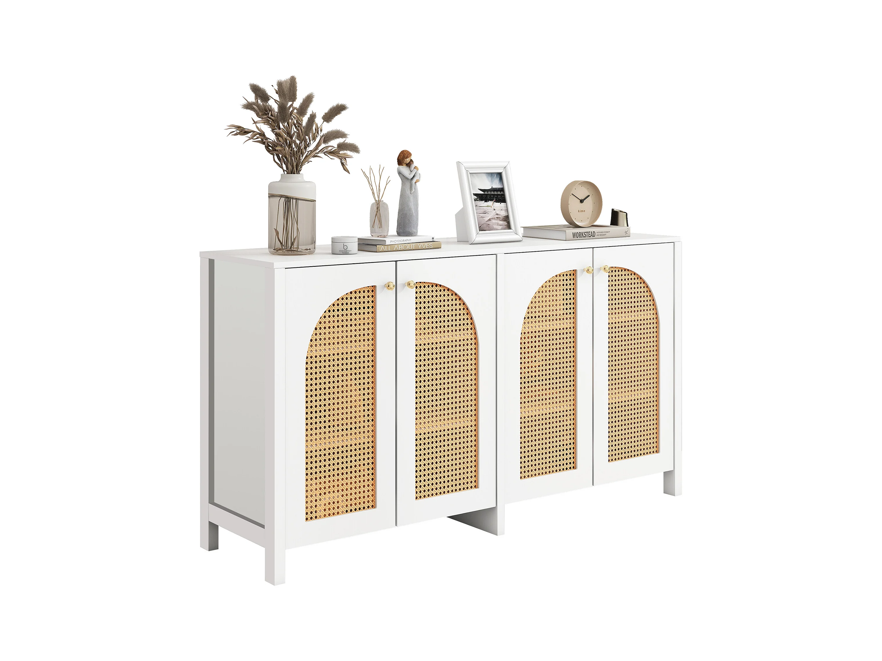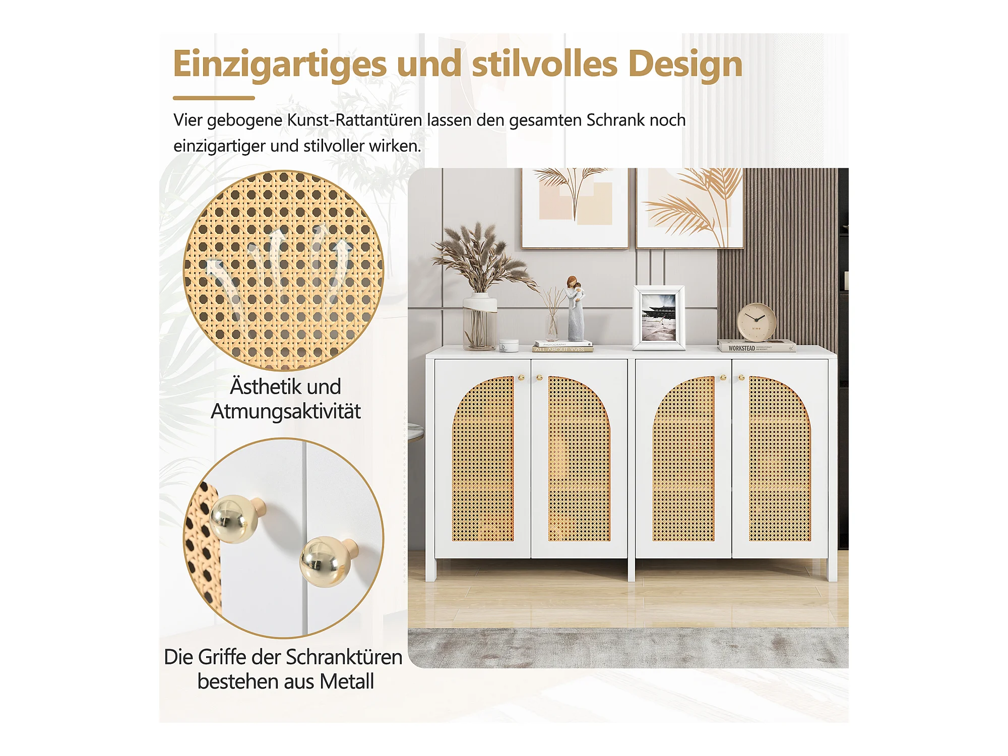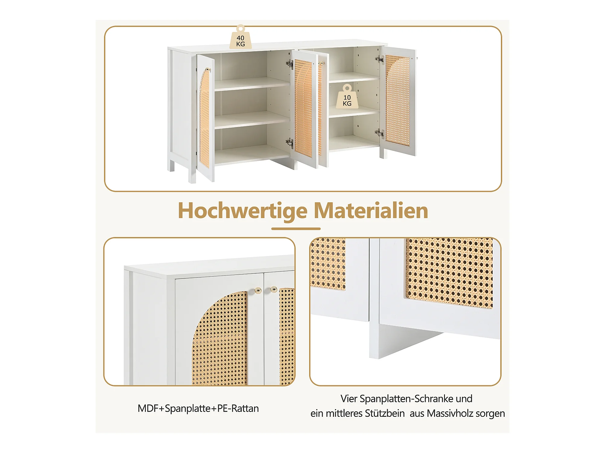 Aparador de 4 puertas MDF ratán diseño moderno almacenaje salón comedor blanco