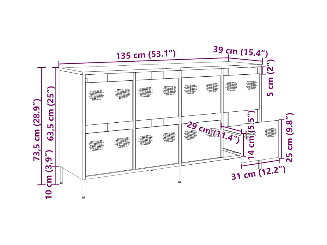Aparador de acero laminado en frío blanco 135x39x73,5 cm