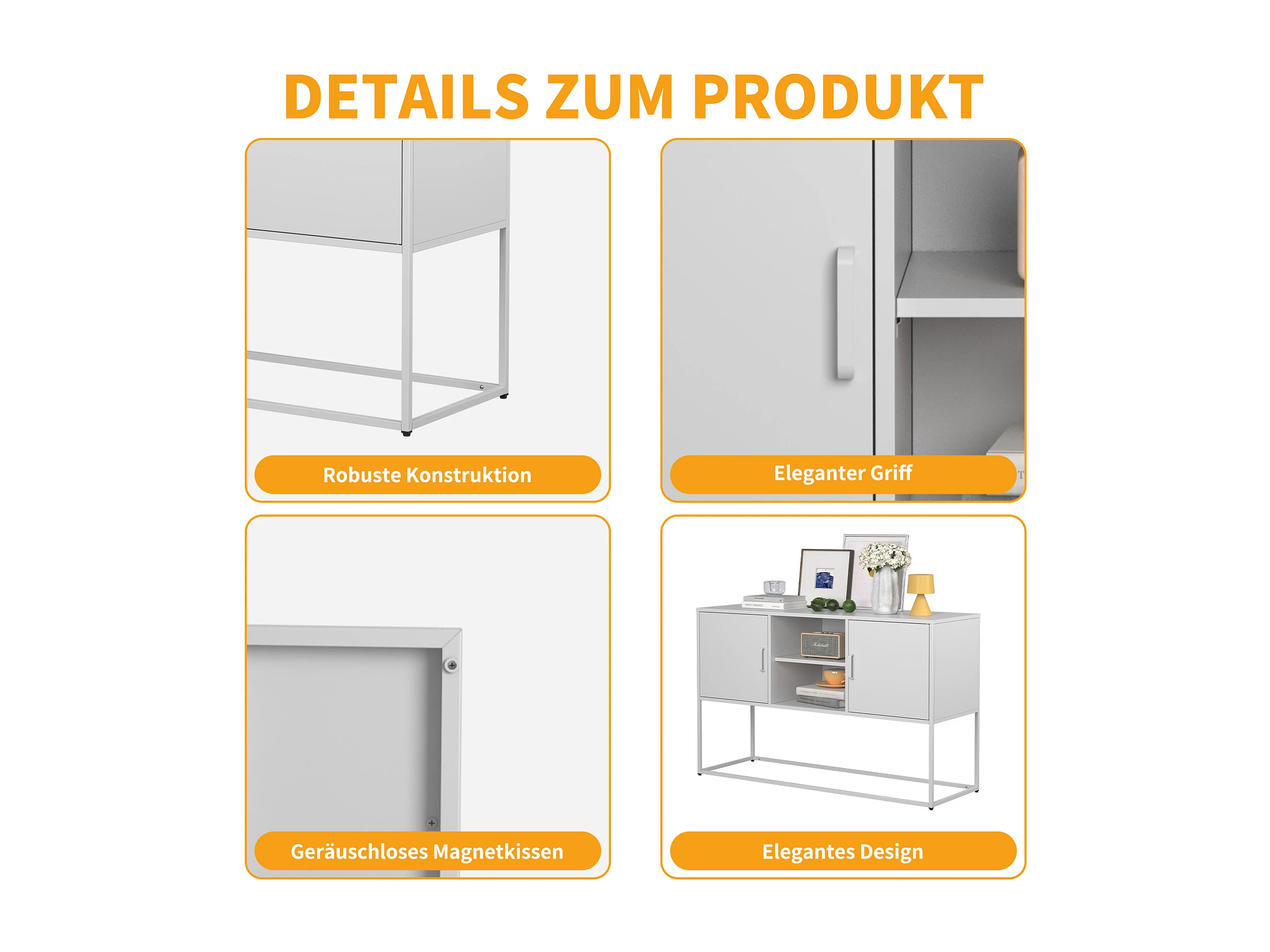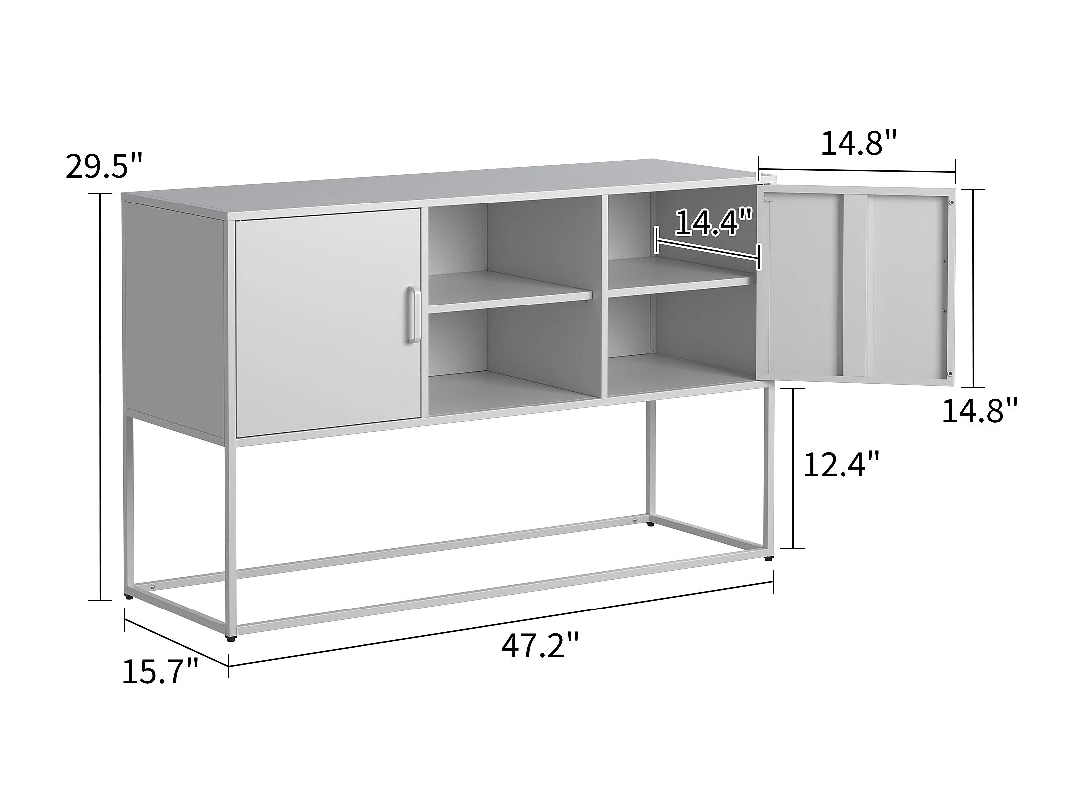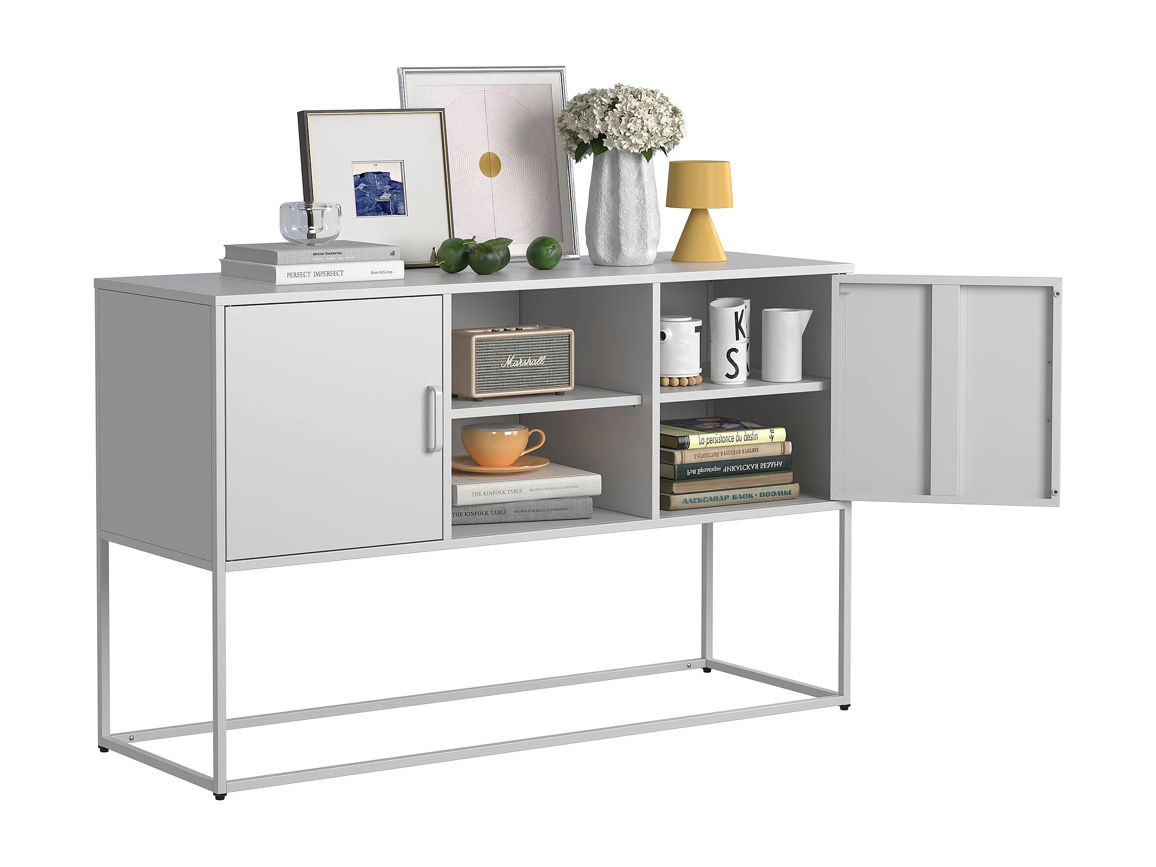 Aparador bajo en acero frío almacenaje 2 puertas estantes salón cocina office gris oscuro