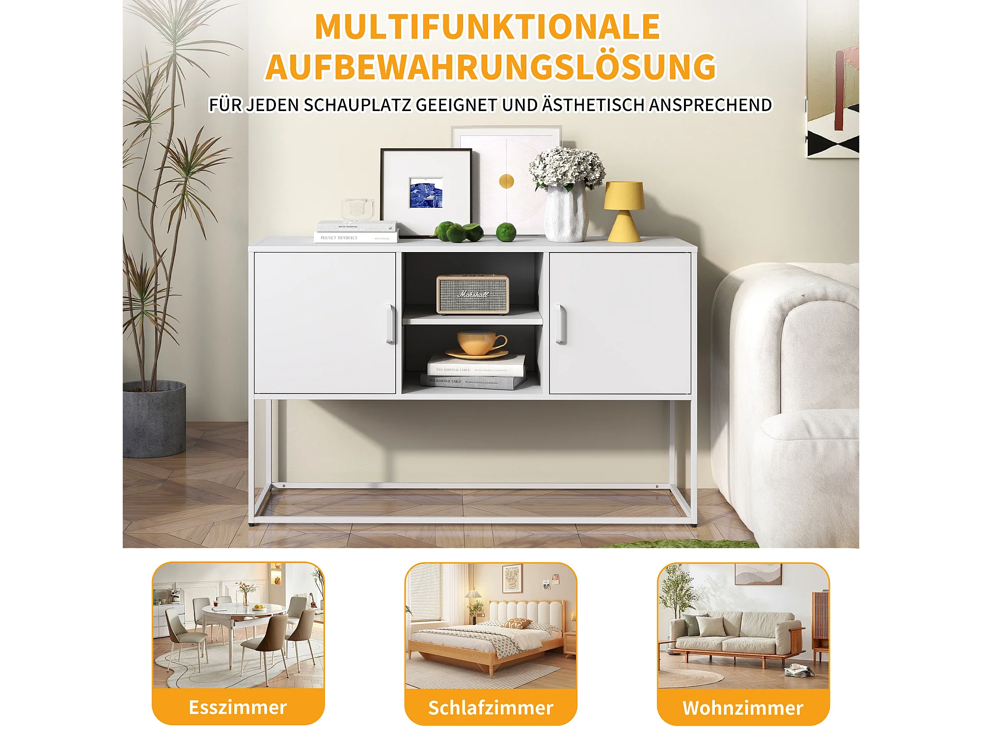 Aparador de almacenamiento de metal de acero duradero con 6 compartimentos para salón y cocina, color negro, 120 x 40 x 75 cm