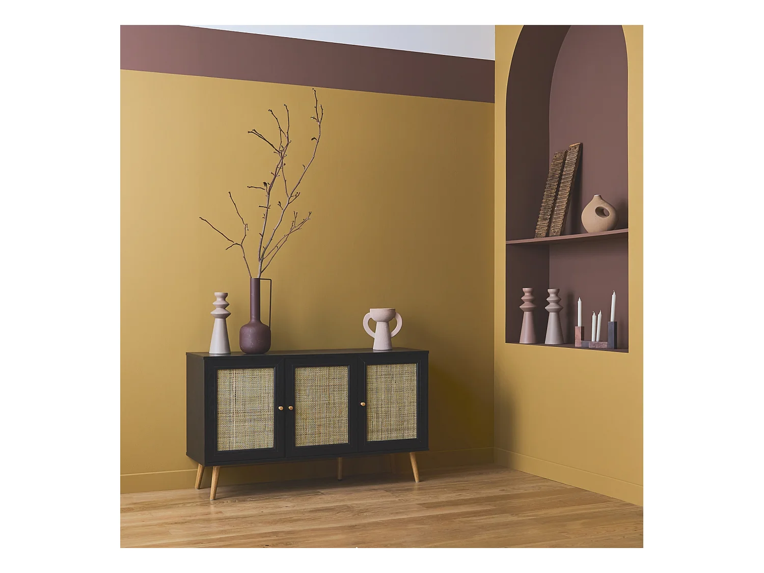 Aparador estilo escandinavo con 1 puerta de caña, 80cm negro