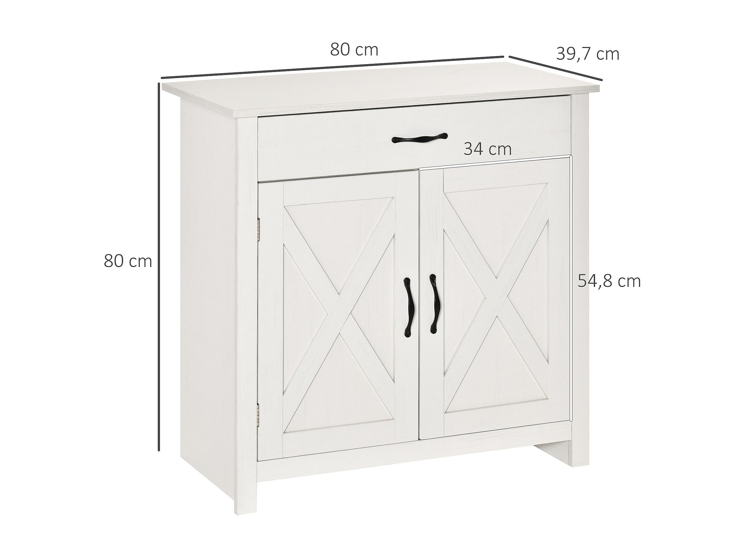 Este aparador HOMCOM de estilo rústico consta de una gran encimera, un cajón y un armario con dos puertas y una balda interior. Tiene un amplio espacio de almacenamiento para que puedas tener organizadas toallas, mantas y otros accesorios u objetos cotidianos. Además, la balda interior es regulable en altura, para adaptarse a tus necesidades o al tamaño de los objetos. Es la combinación perfecta entre funcionalidad y practicidad, y combinará fácilmente con cualquier decoración de tu hogar.