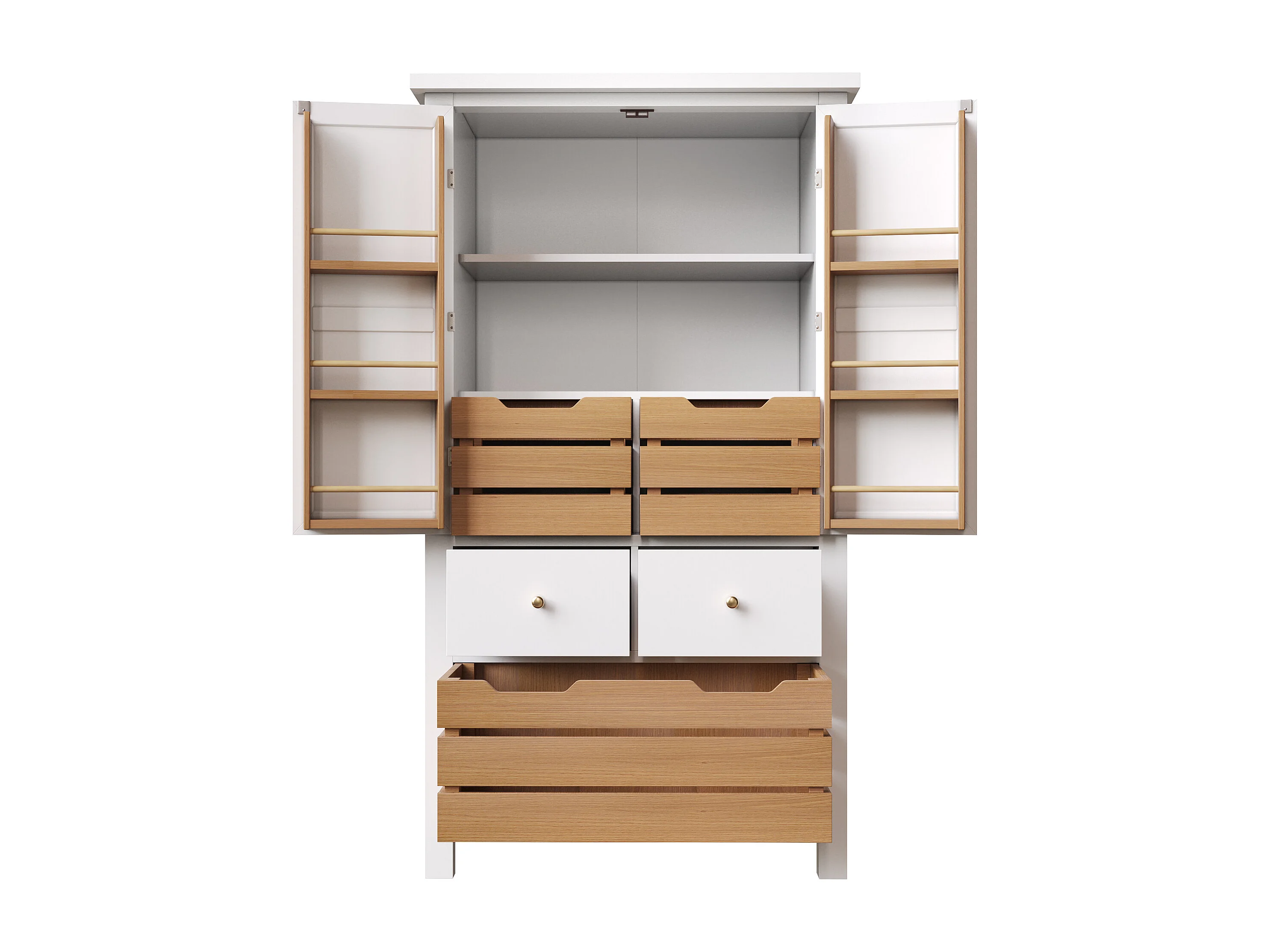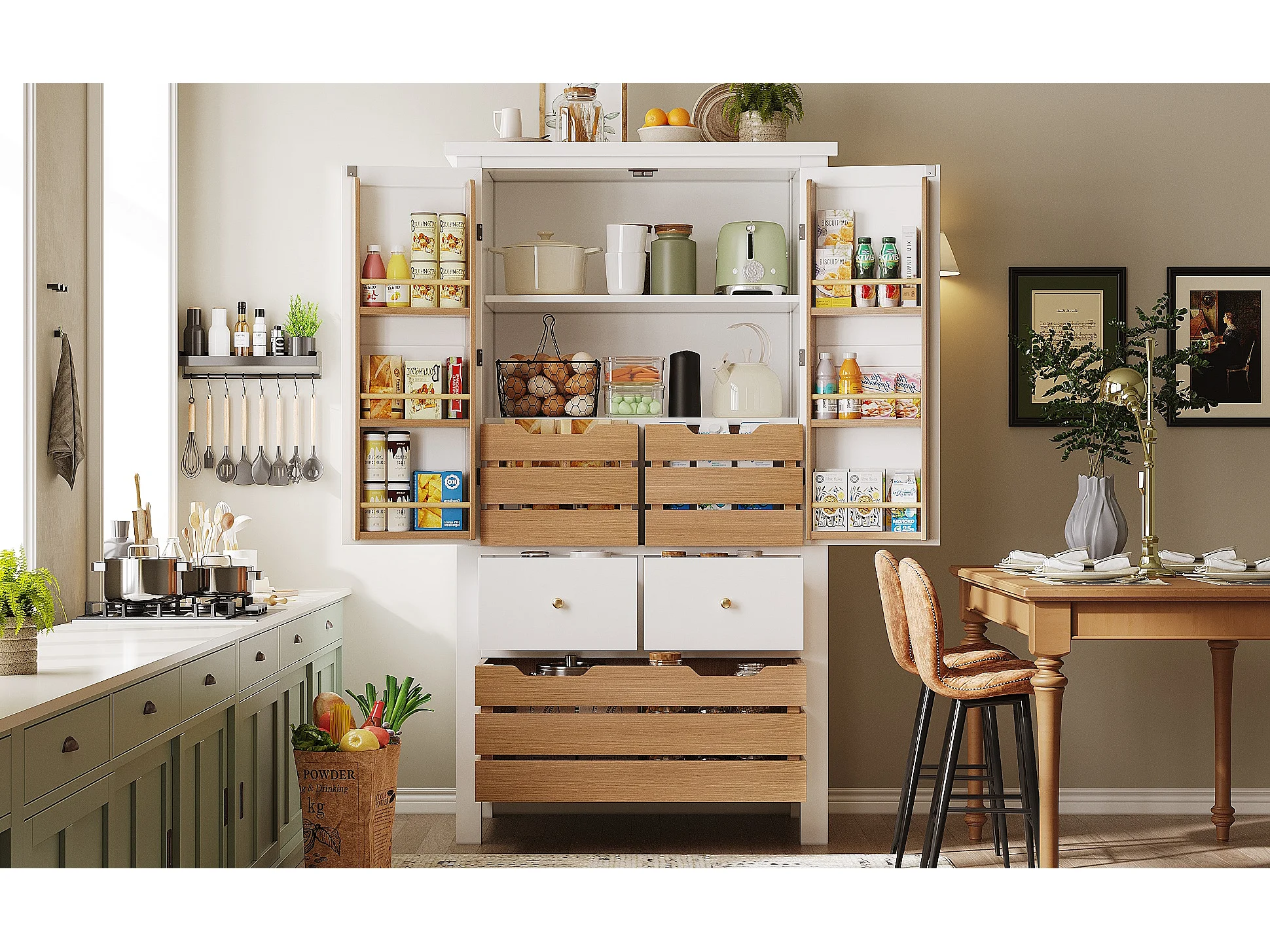 Aparador de cocina con 2 puertas y 5 cajones - Color blanco y madera 80x40x140cm