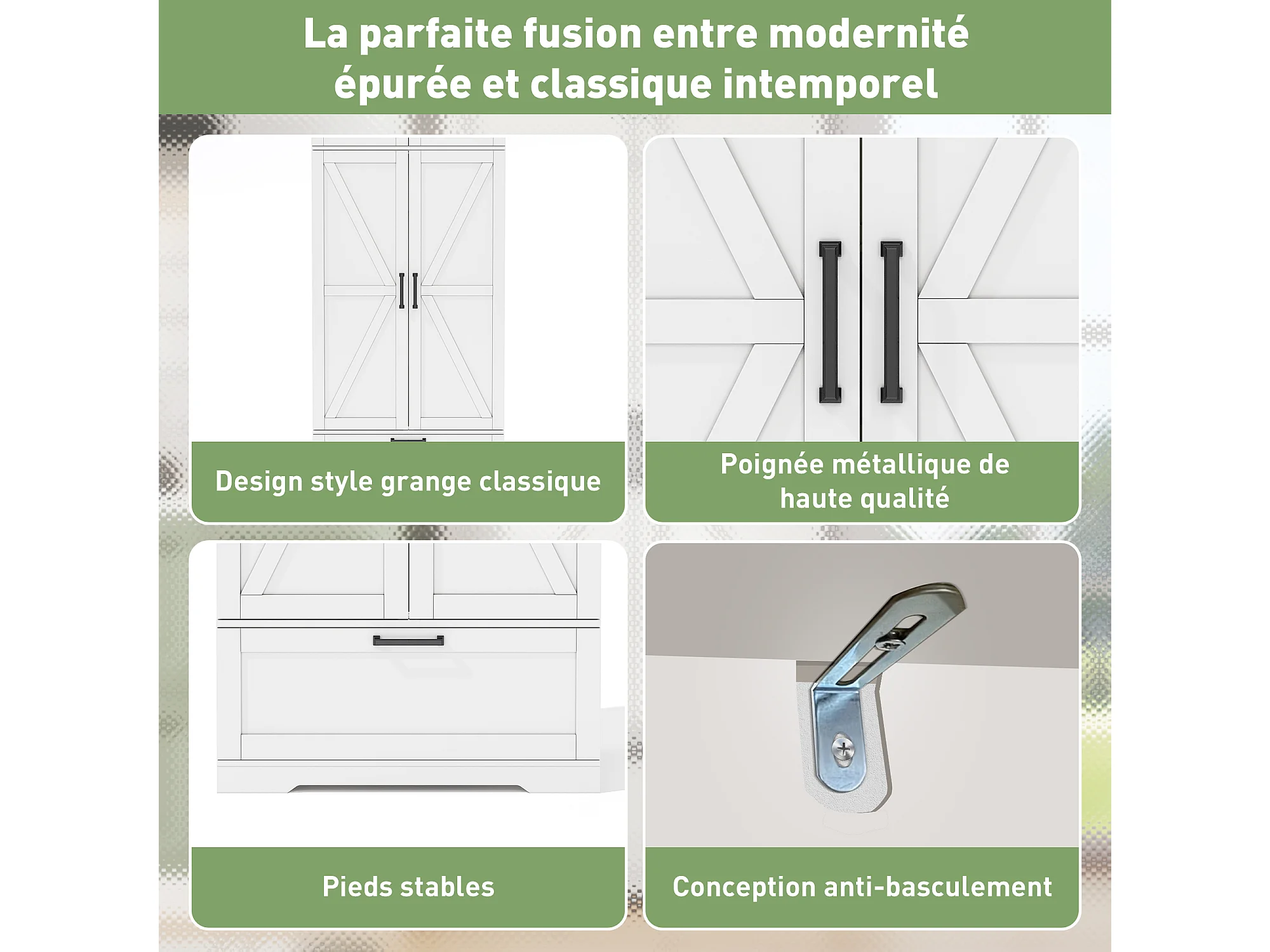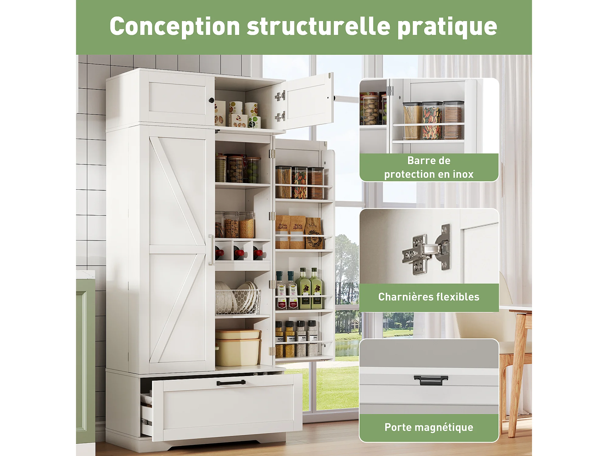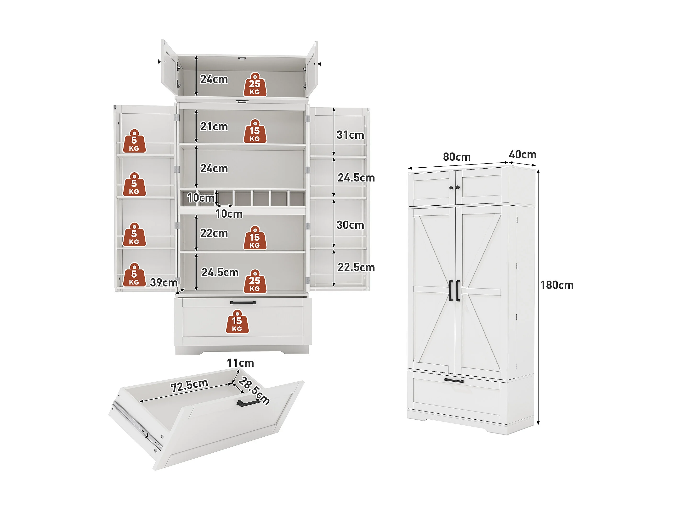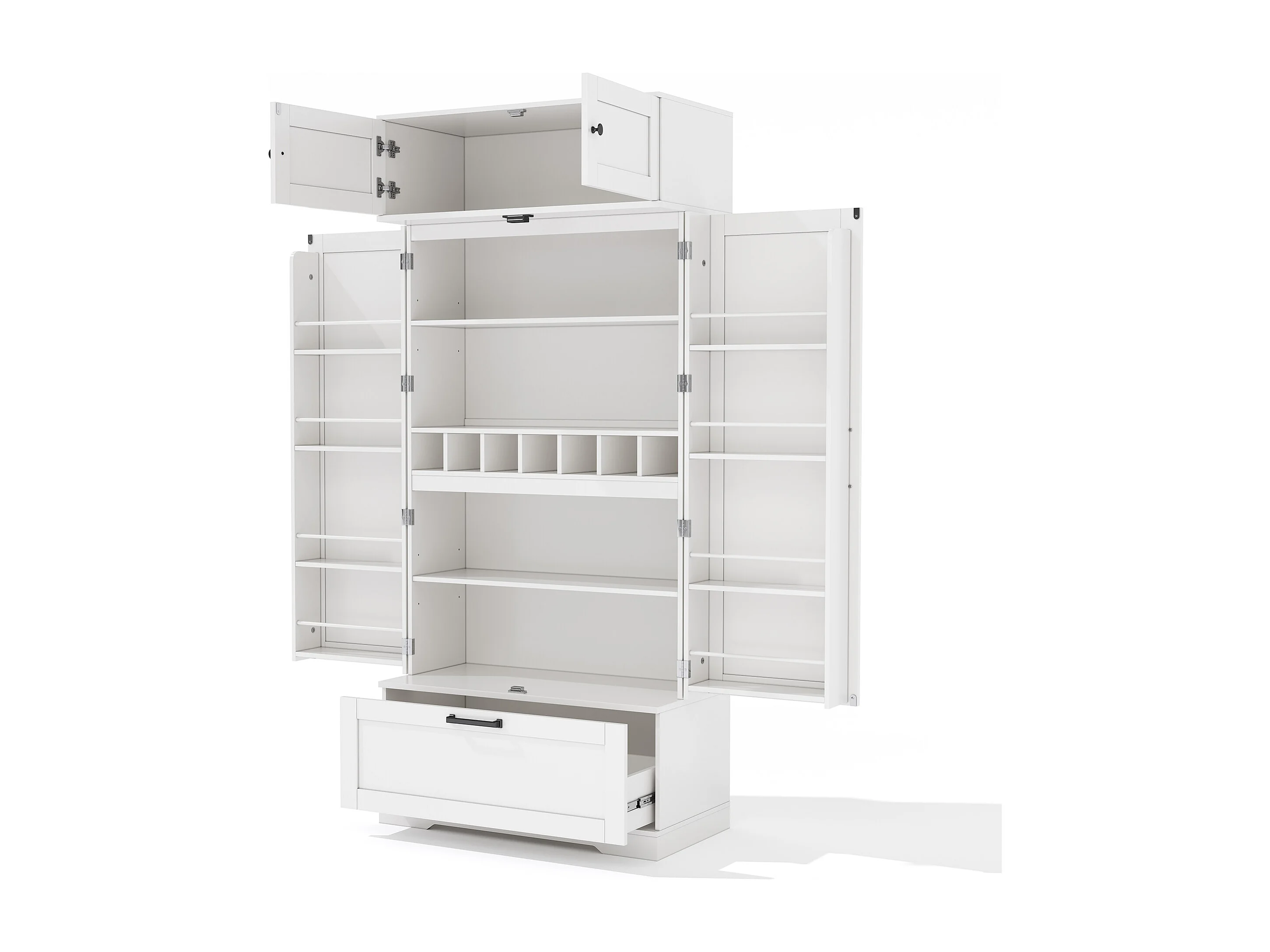 Aparador de cocina con 4 puertas y 1 cajón, aparador alto con tirador de metal retro, blanco