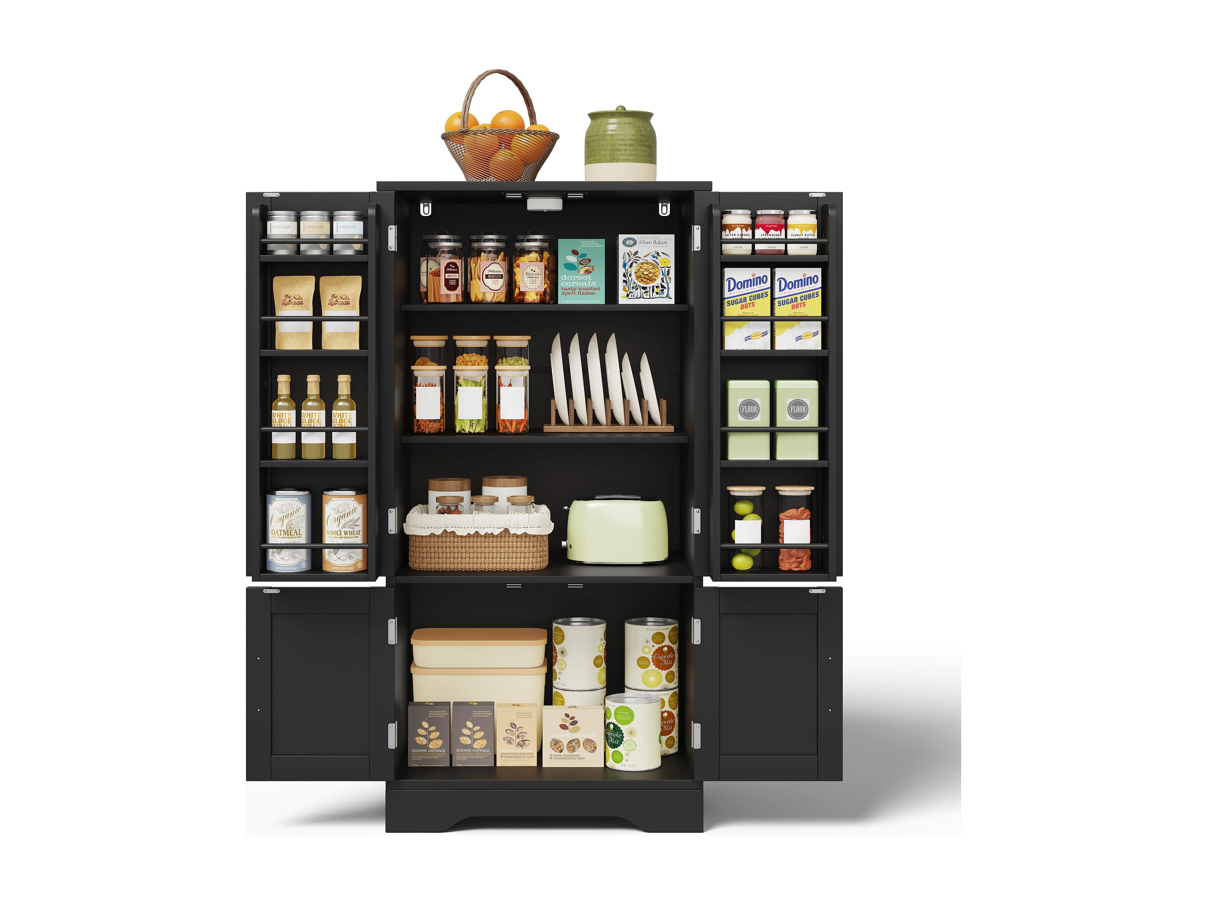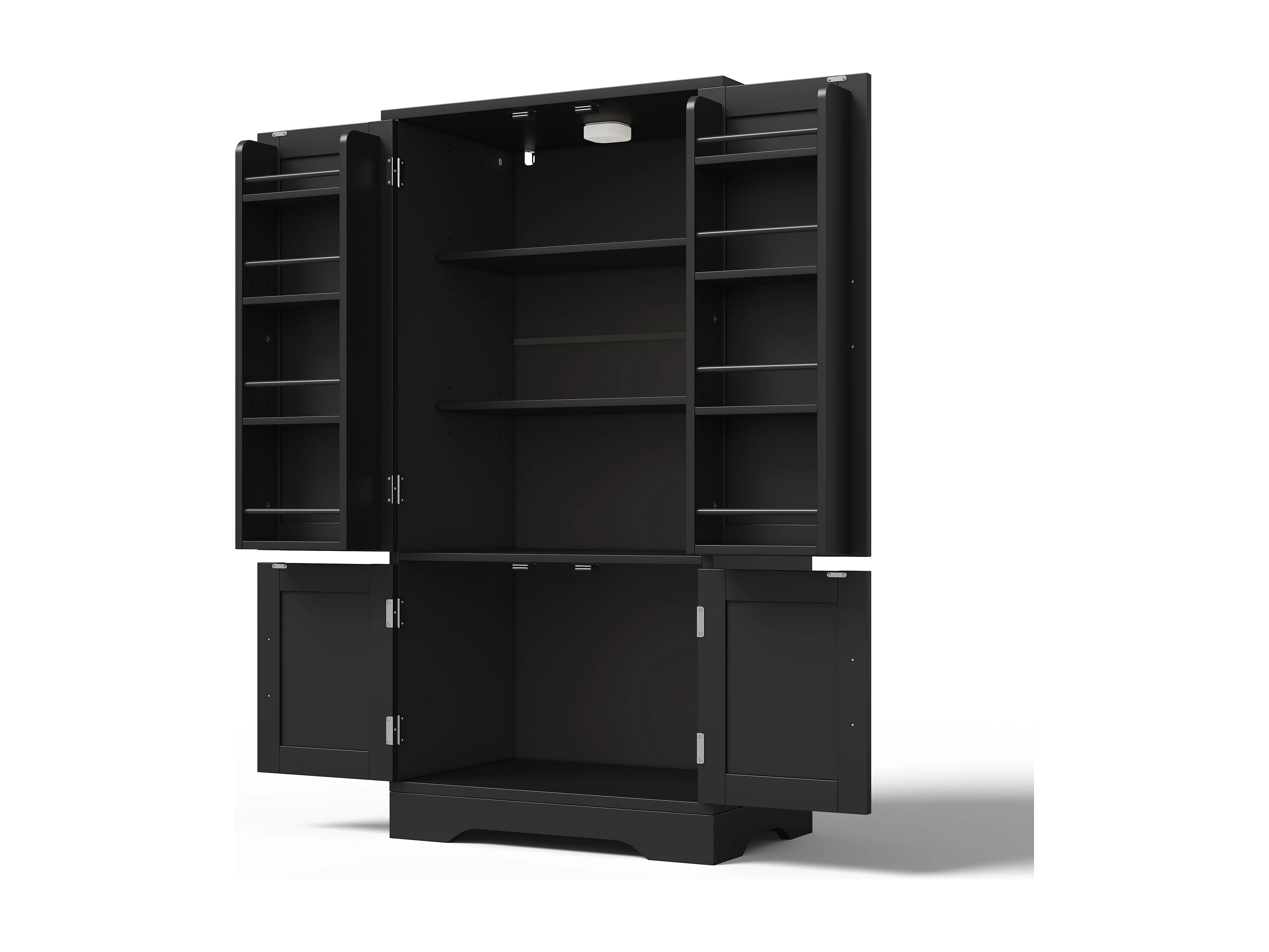 Aparador de cocina con 4 puertas y sensor LED - estantes ajustables - madera MDF - Negro