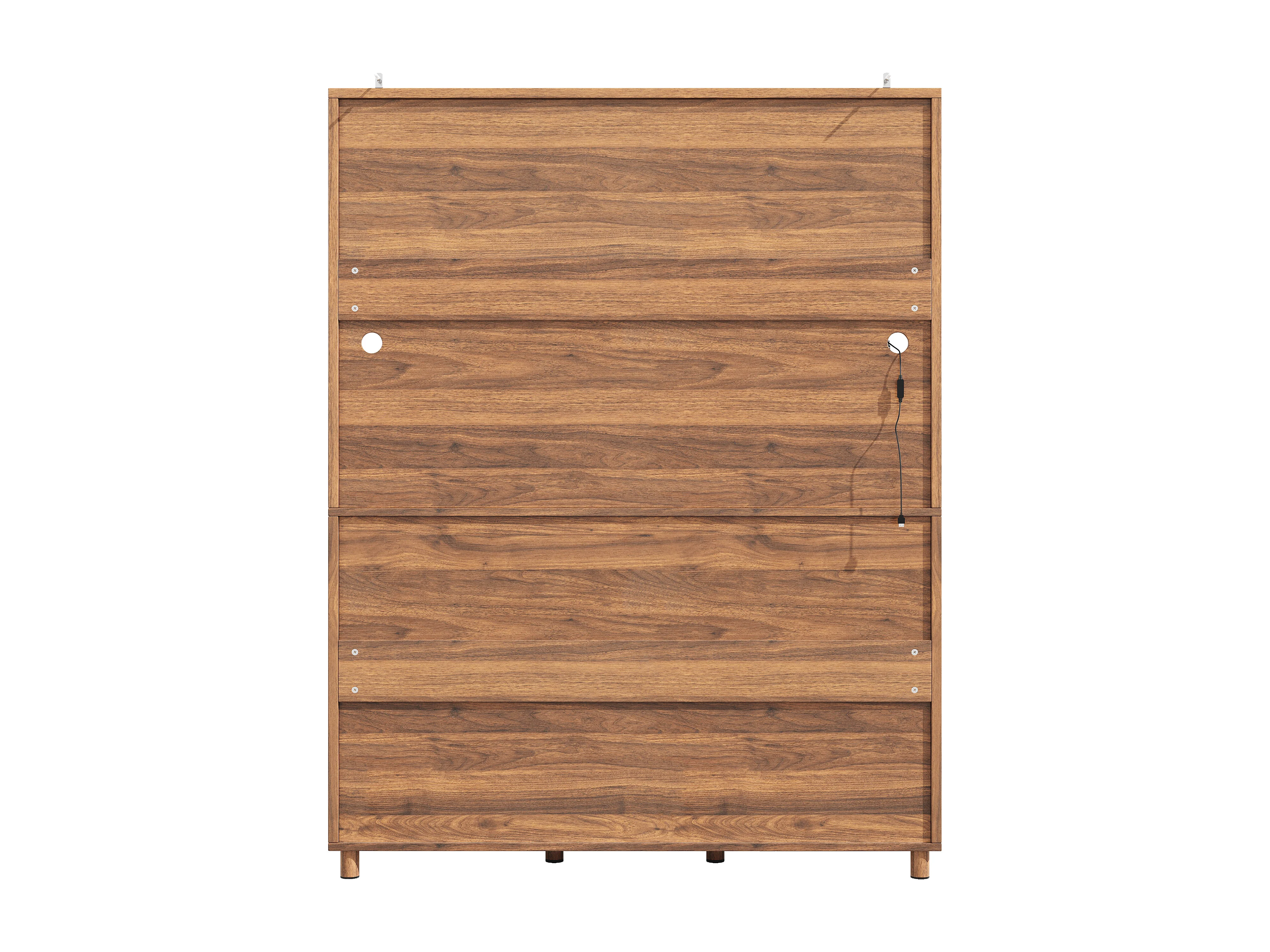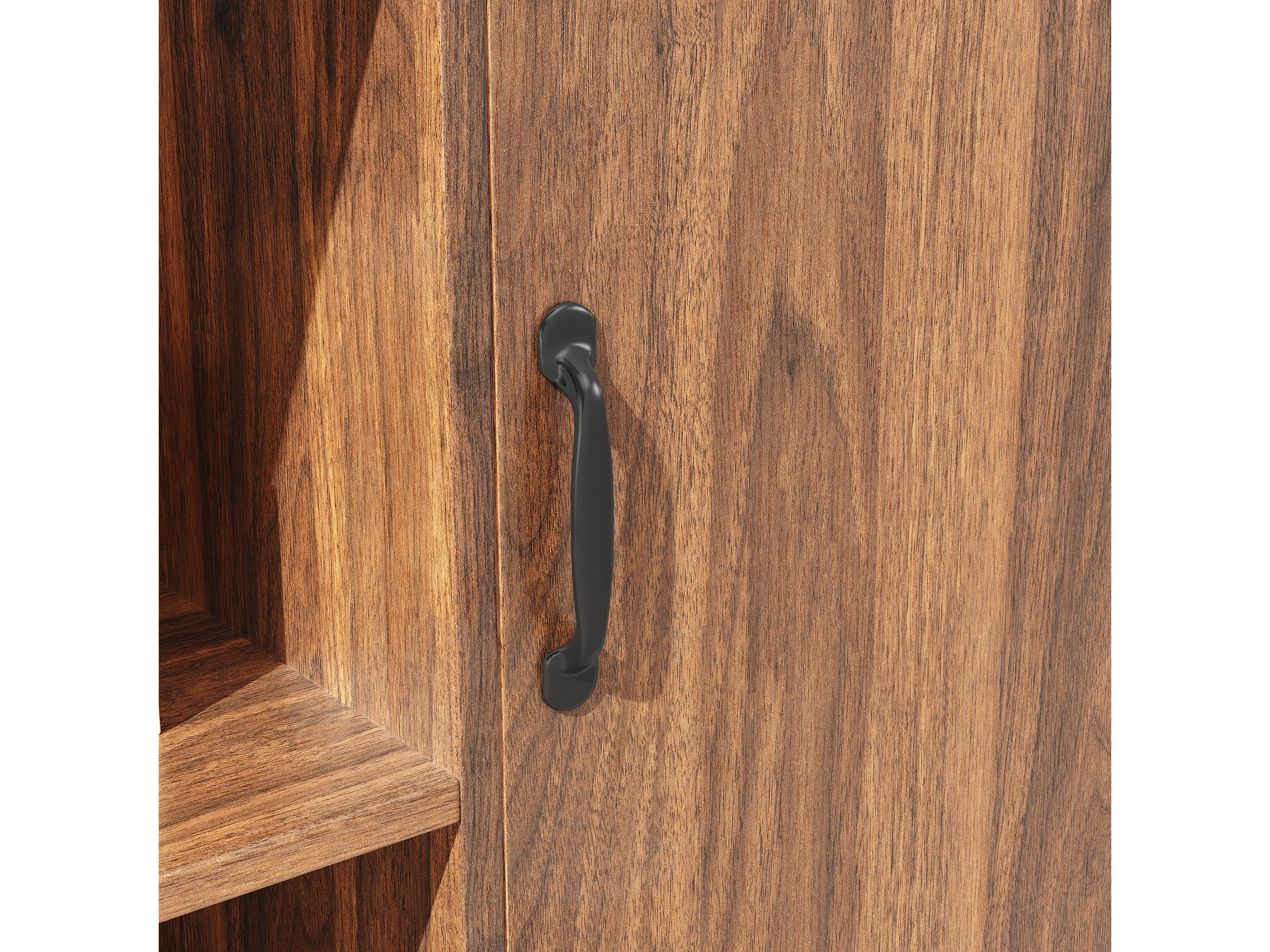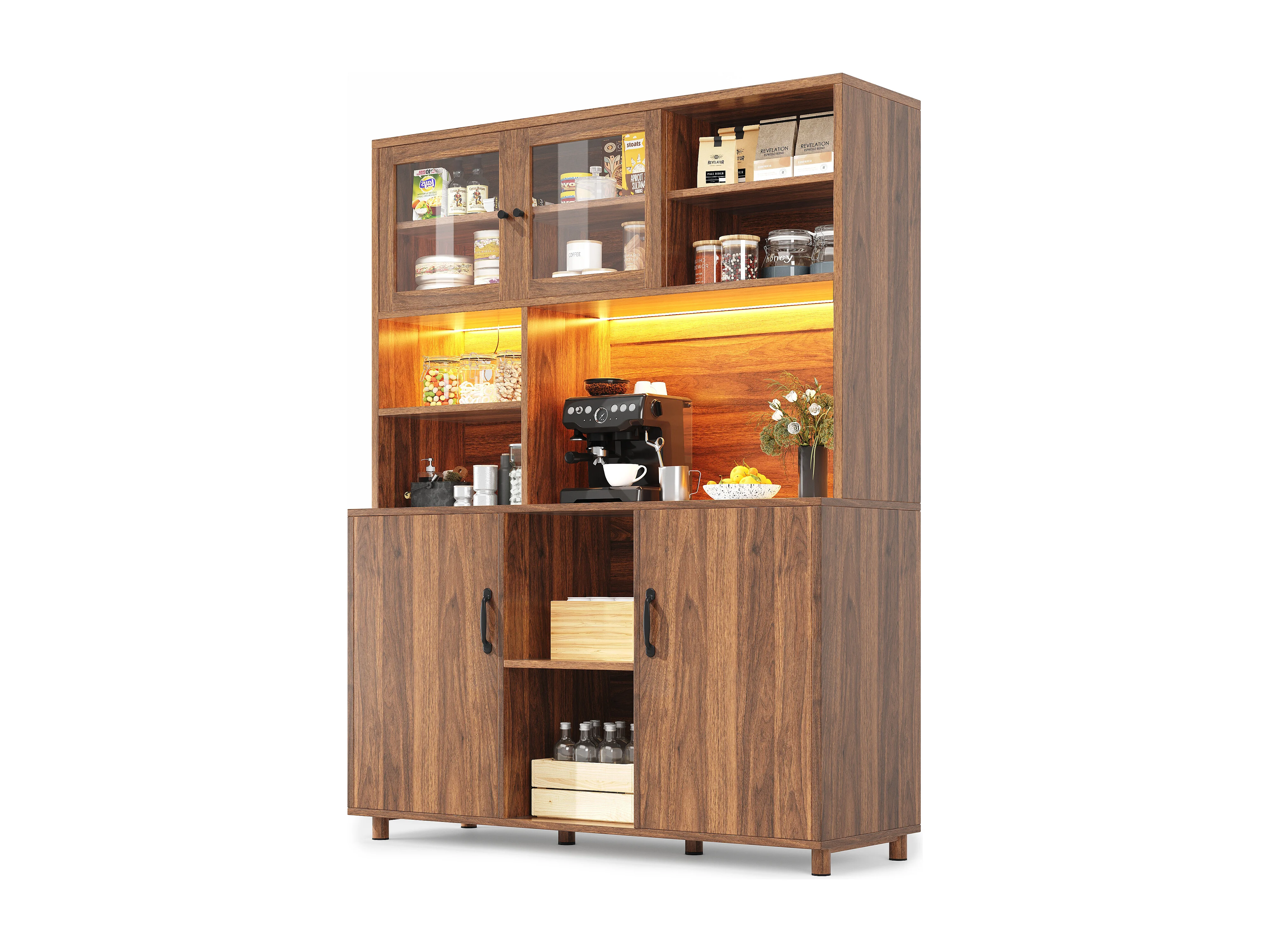 Aparador de cocina con iluminación LED, 2 puertas y 2 puertas correderas de cristal - Nogal marrón