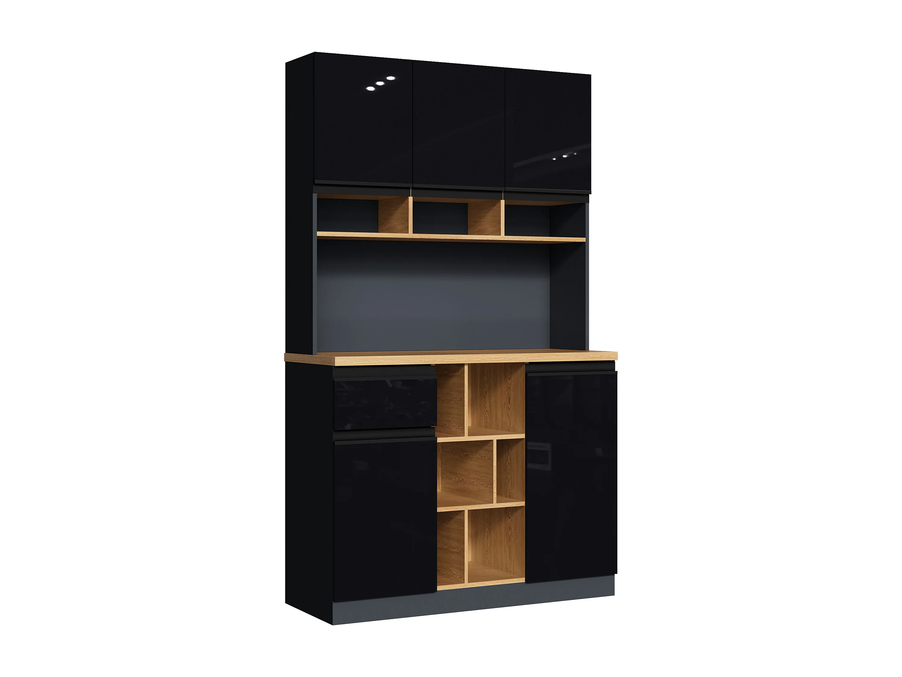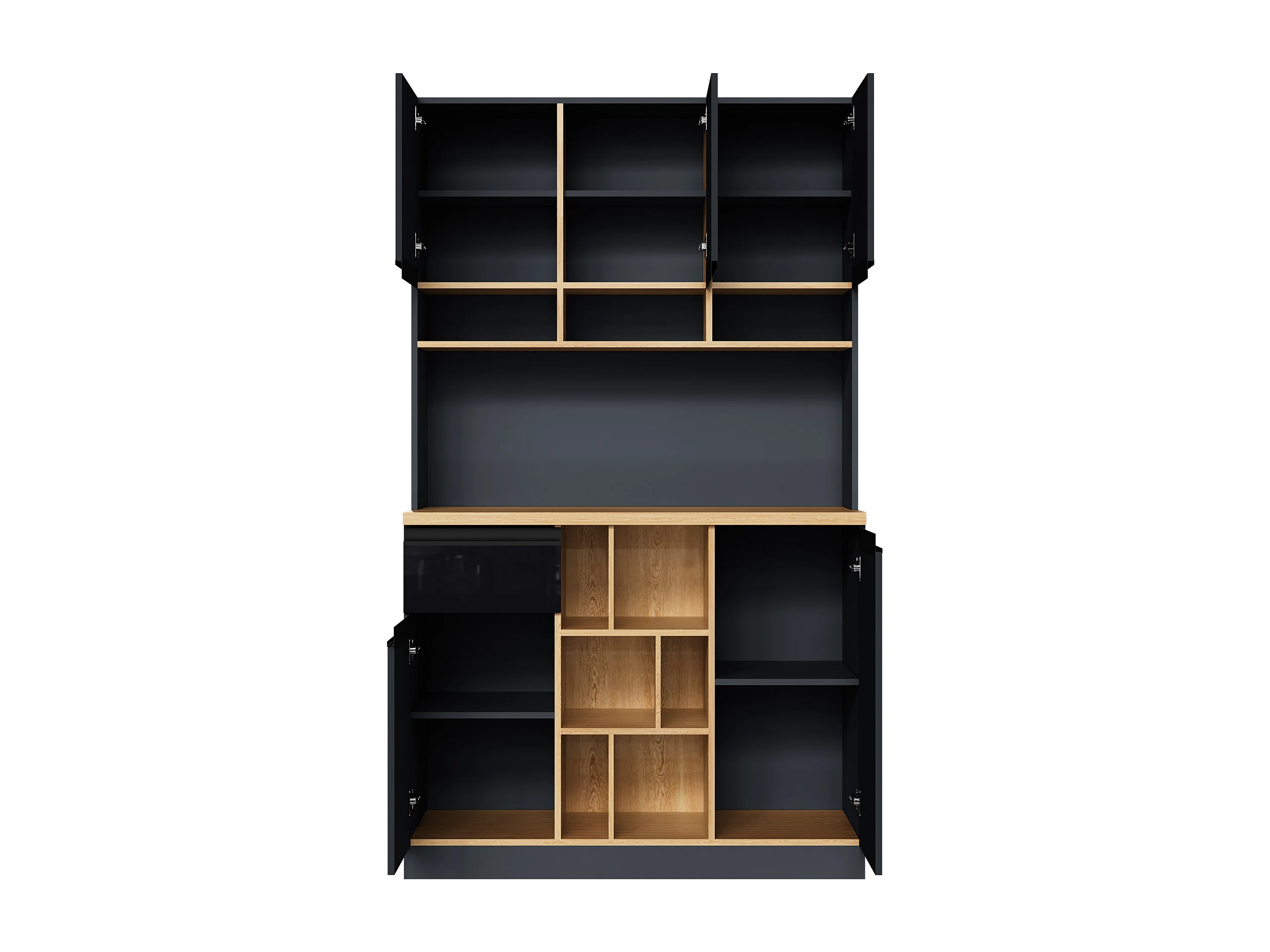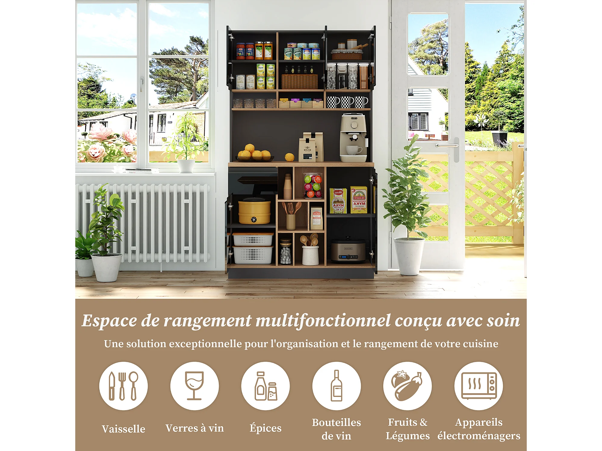 Aparador de cocina de 105 x 45 x 185 cm, mueble de almacenaje con estantes ajustables, para salón, color negro