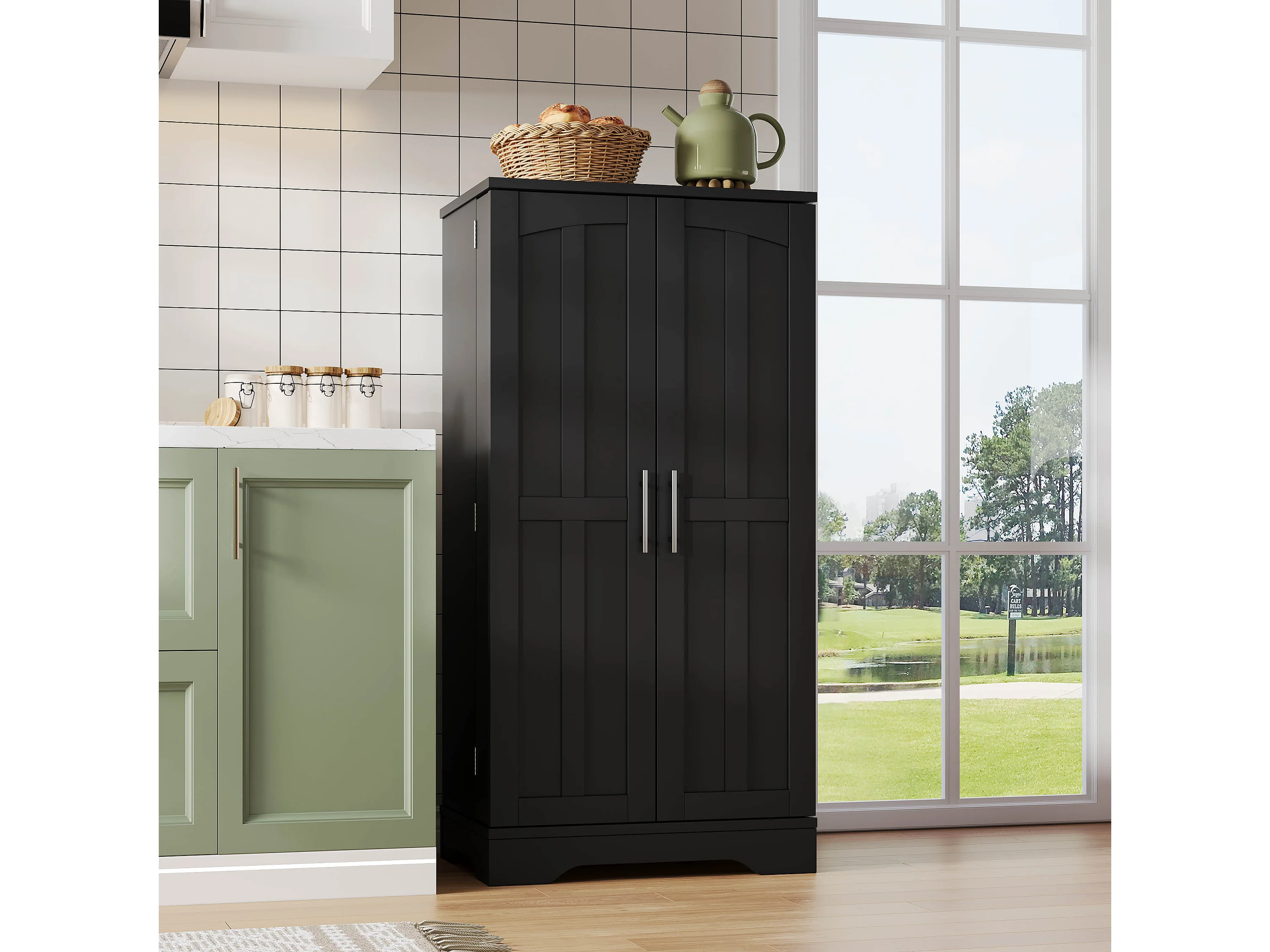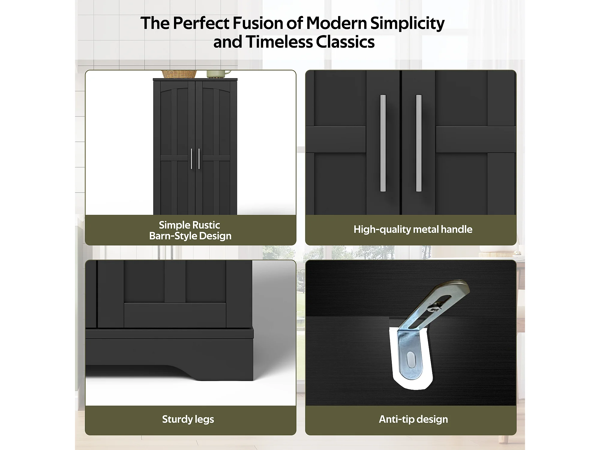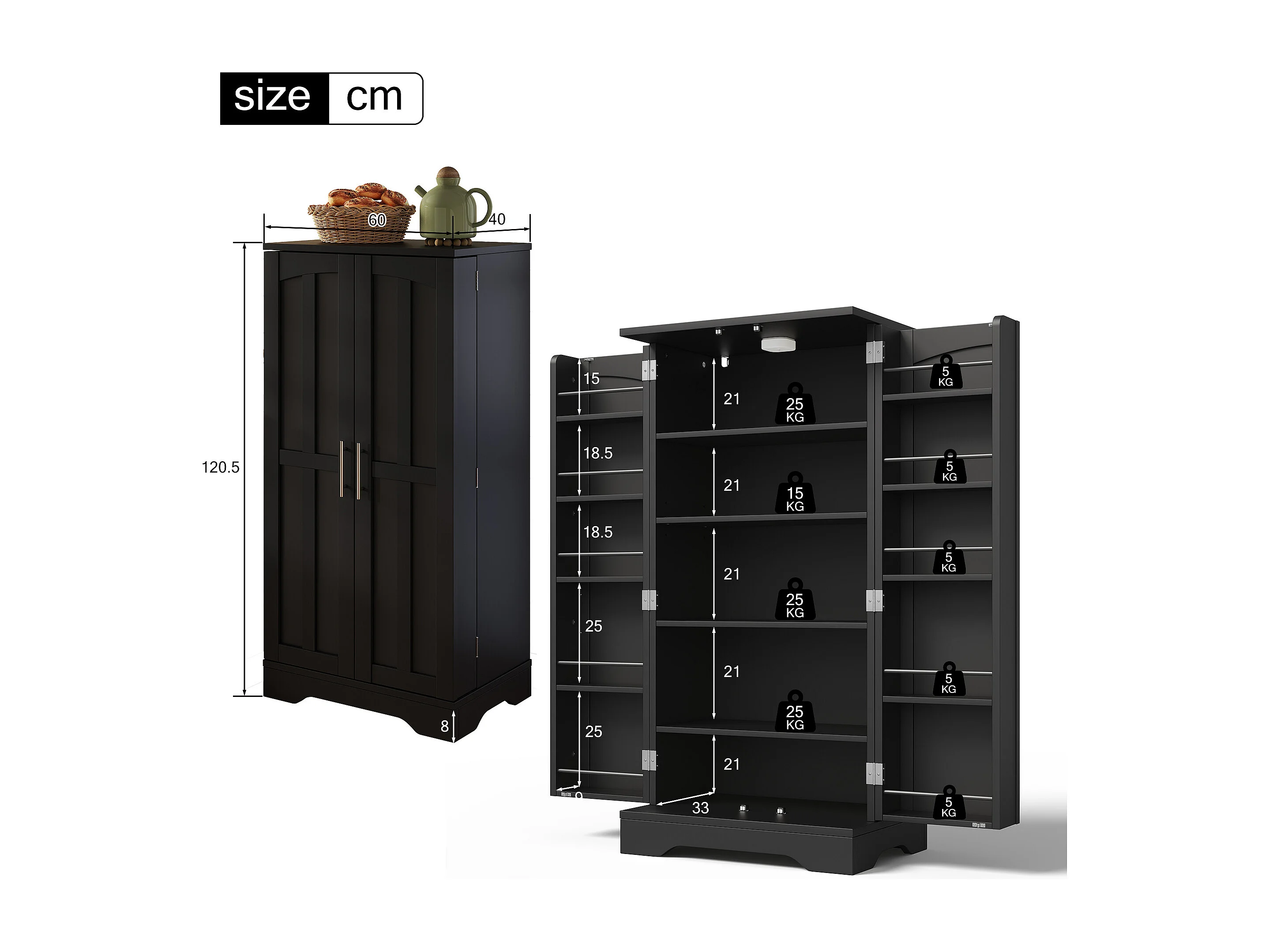 Aparador de cocina con 2 puertas y sensor LED - estantes ajustables - Negro