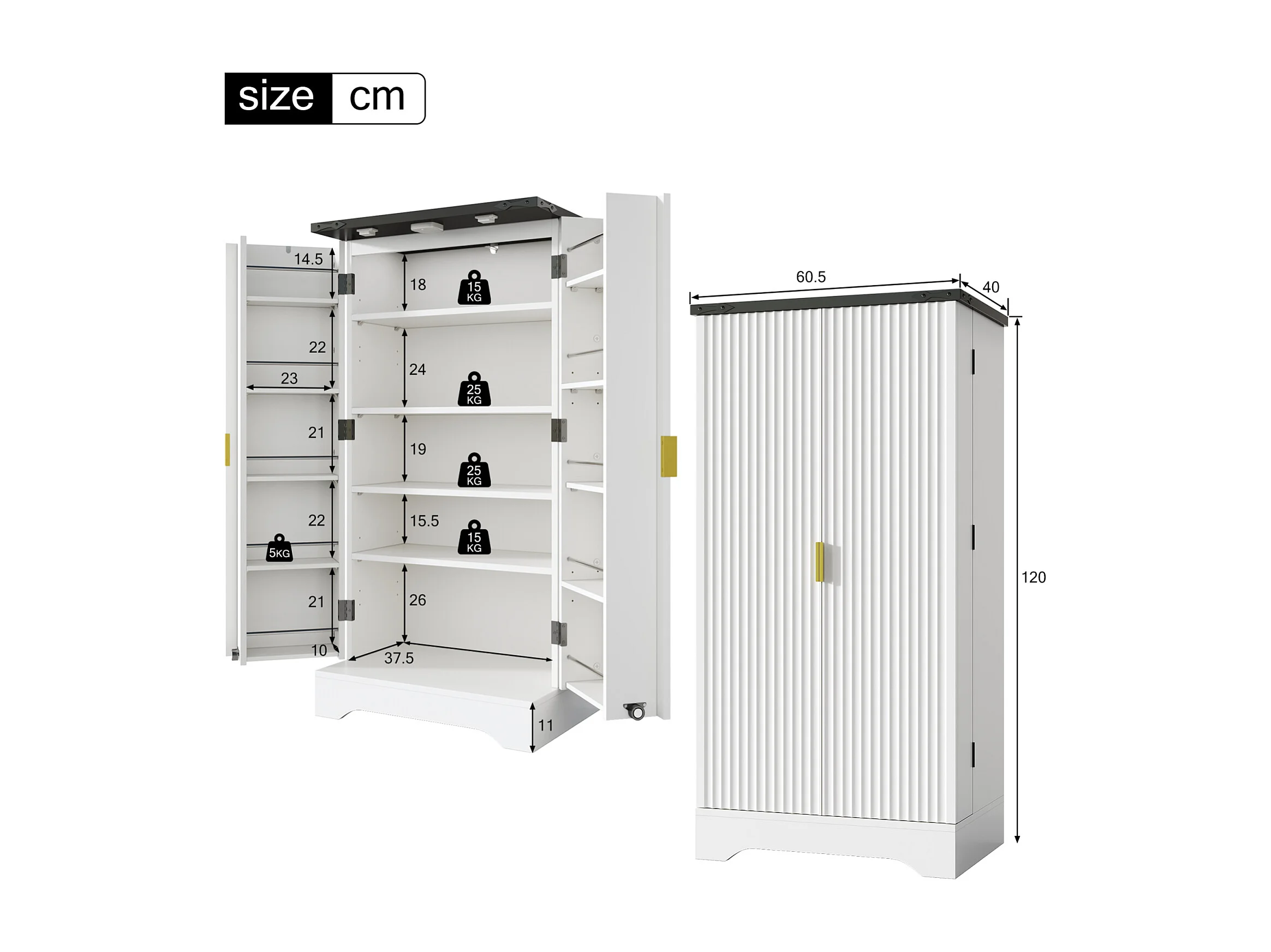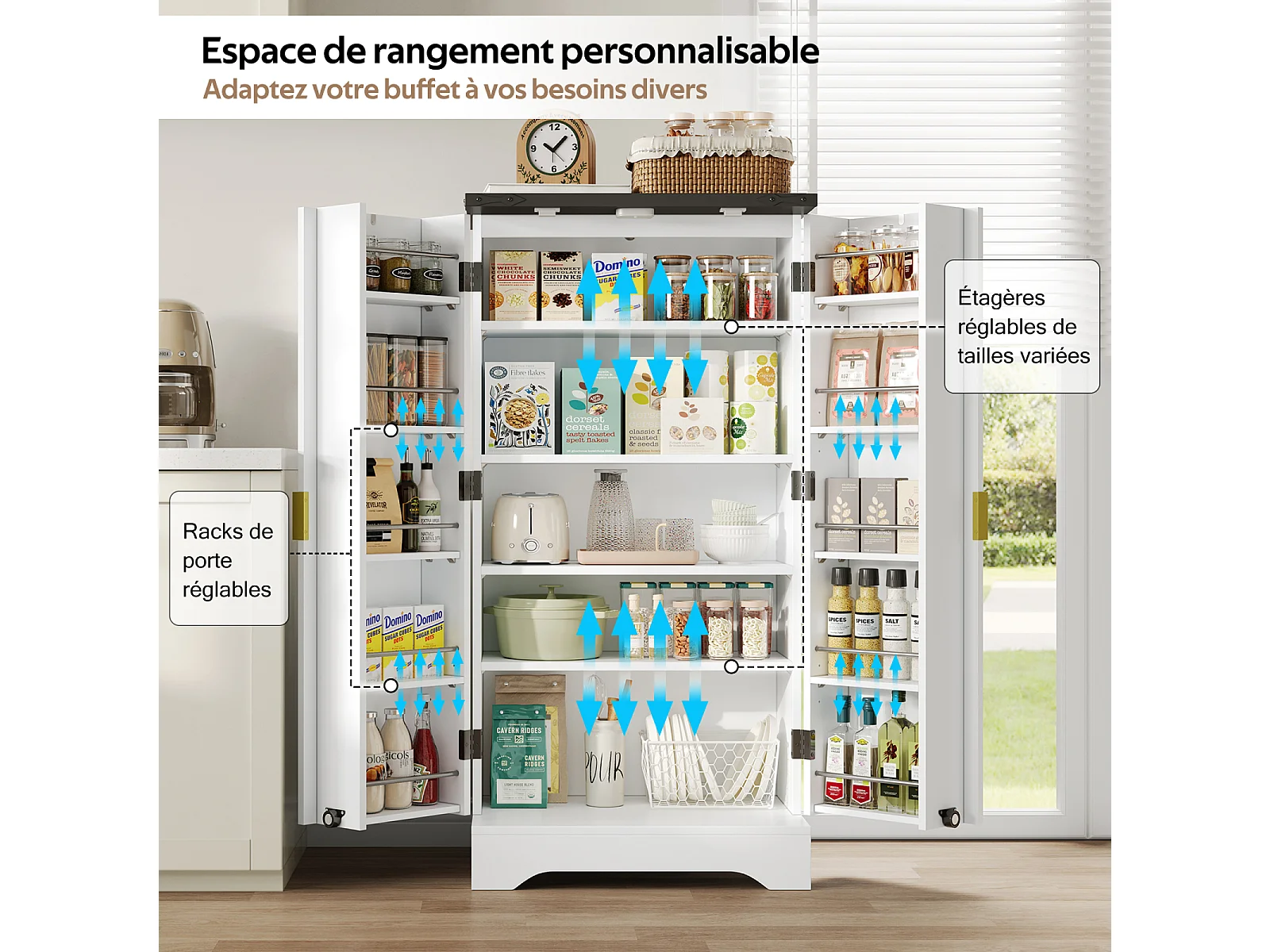 Aparador de cocina estilo rústico con 2 puertas y estantes ajustables, color blanco