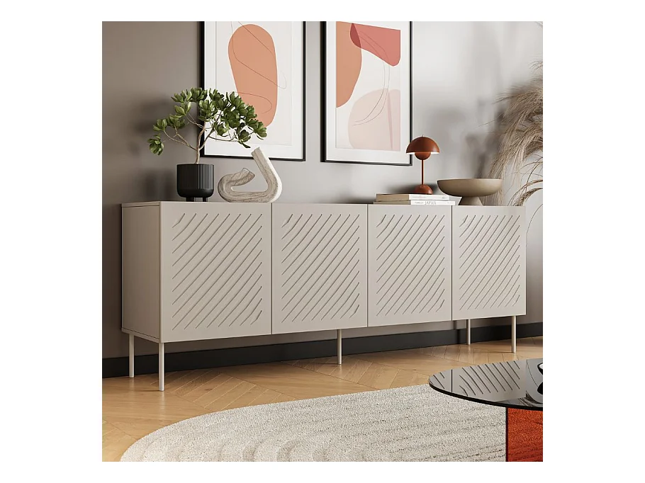 Aparador de diseño beige 200cm 4 puertas con motivos Abys