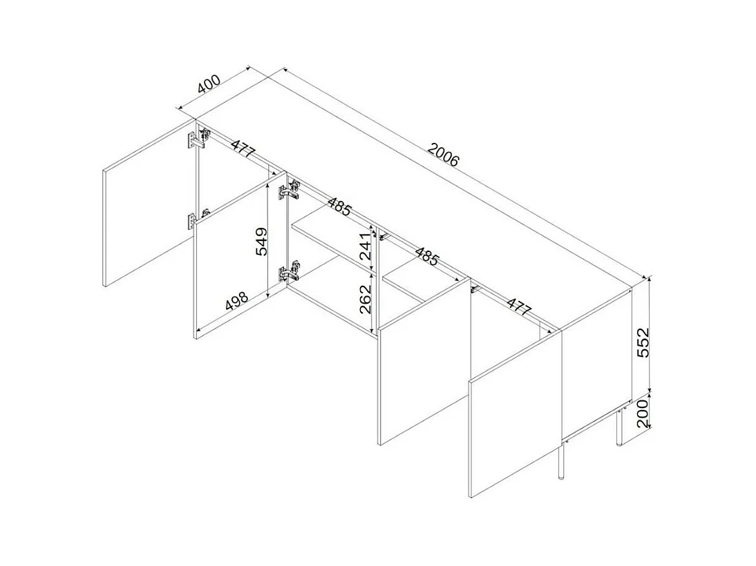 Aparador Luvio Con 4 Puertas - Patas De Metal 160 Cm Negro