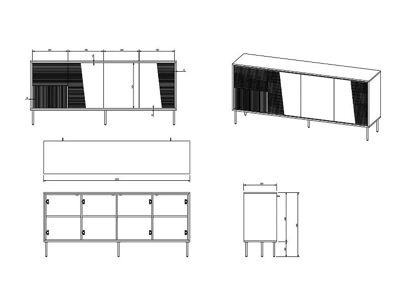 Aparador contemporáneo negro mate de 200 cm con frente de diseño Kali