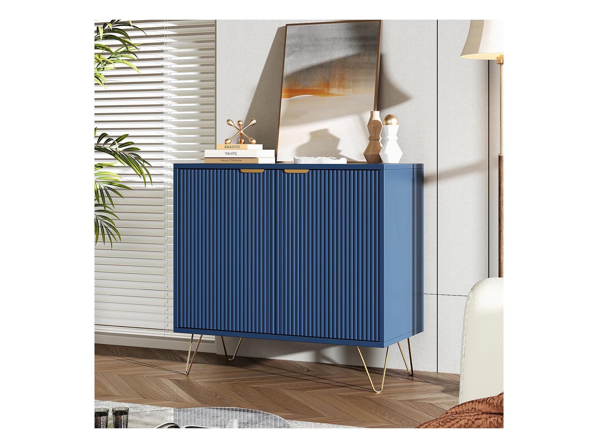 Aparador de dos puertas azul marino con patas doradas: diseño moderno y elegante.