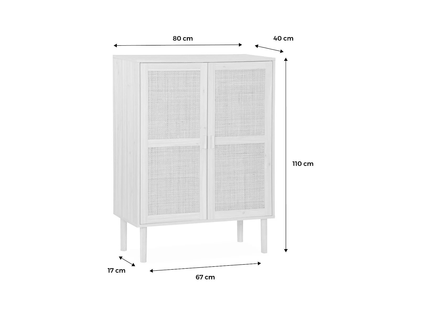 Aparador de efecto caña y madera con 2 puertas, 80cm natural