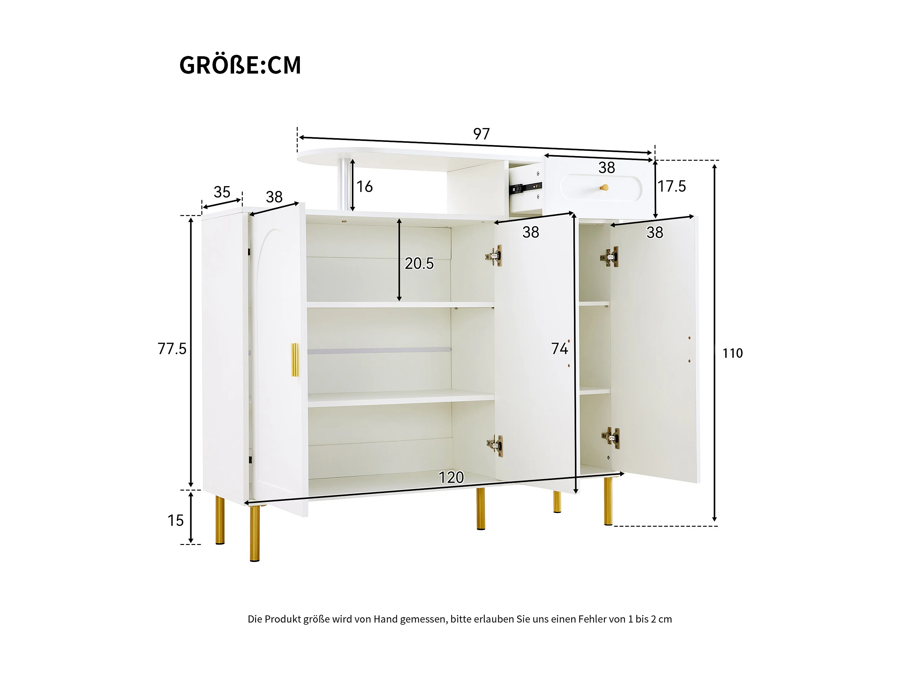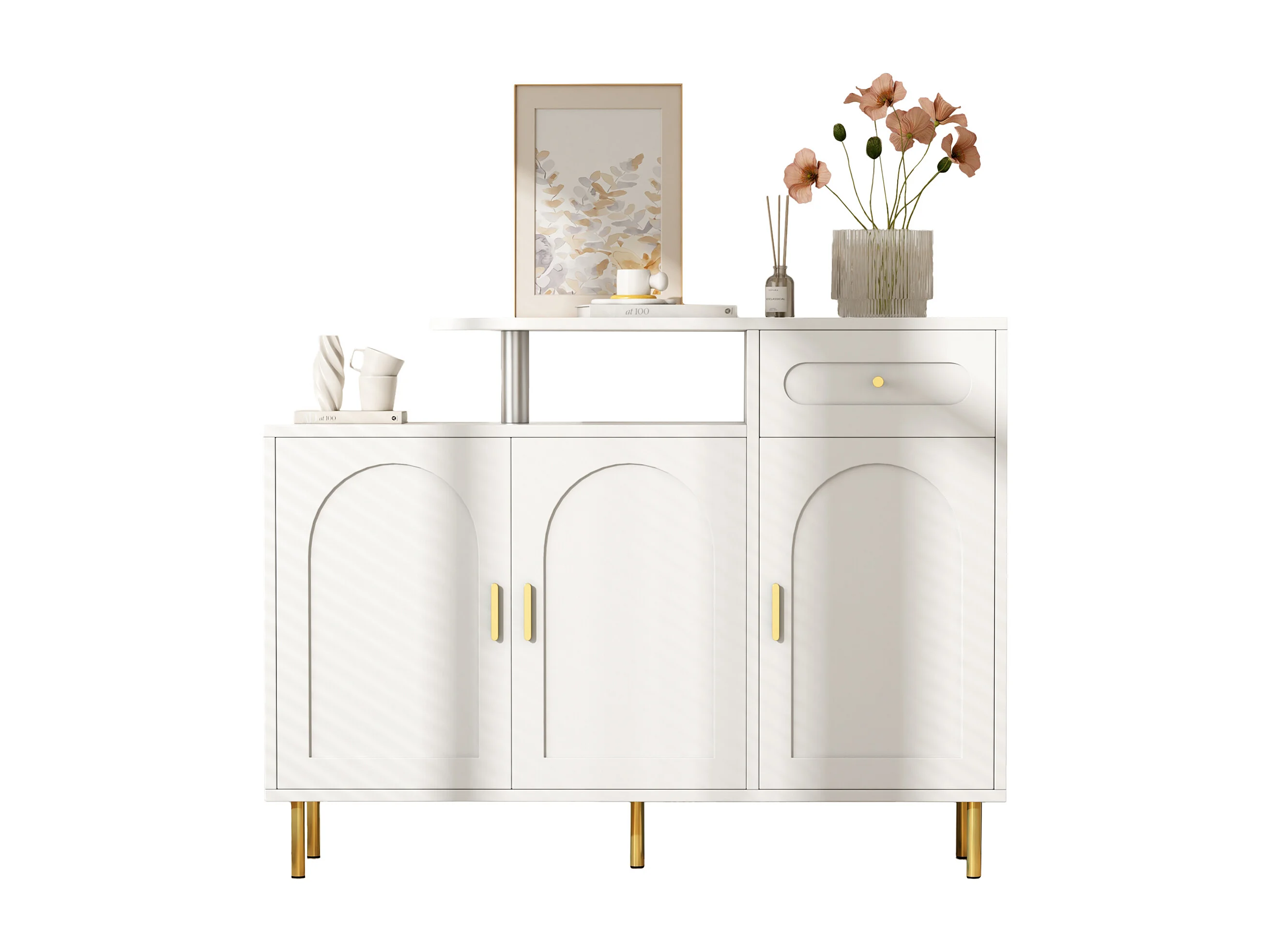 Aparador moderno de MDF blanco de 120 cm con 4 puertas talladas almacenaje salón comedor
