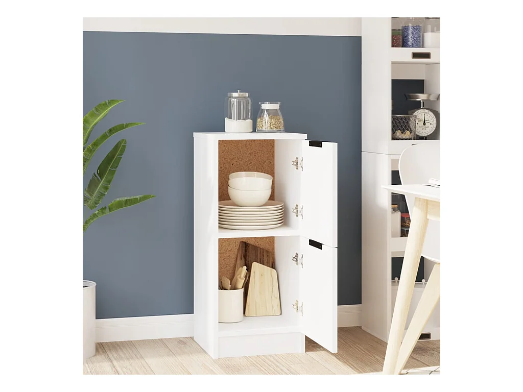 Aparador de madera contrachapada blanco brillante 88x30x70 cm