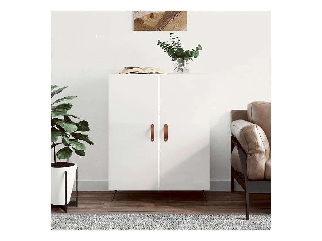 Aparador de madera contrachapada blanco brillante 69,5x34x90 cm ES35482