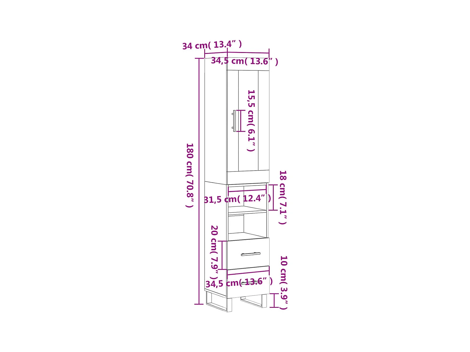 Aparador alto madera contrachapada gris Sonoma 34,5x34x180 cm