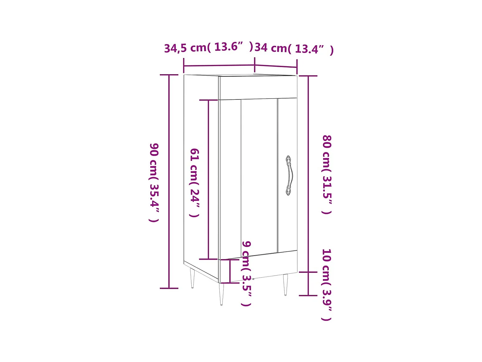 Aparador de madera contrachapada gris hormigón 34,5x34x90 cm