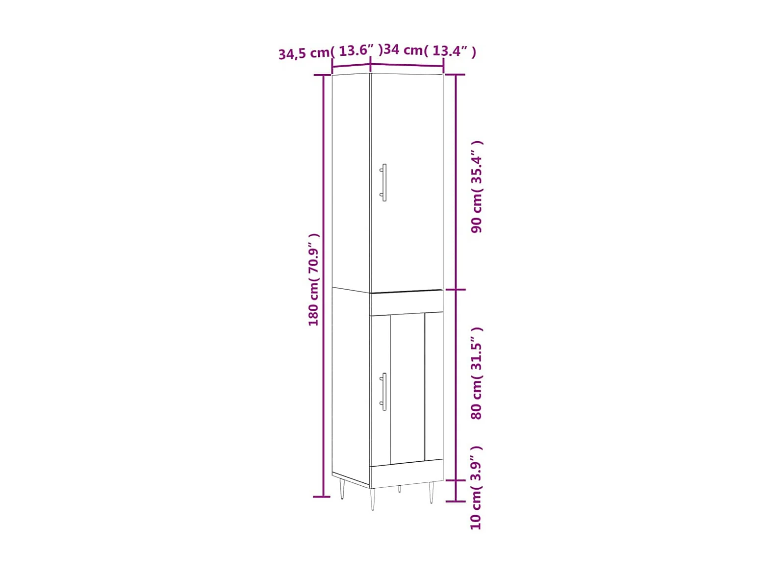 Aparador de madera contrachapada roble ahumado 34,5x34x180 cm