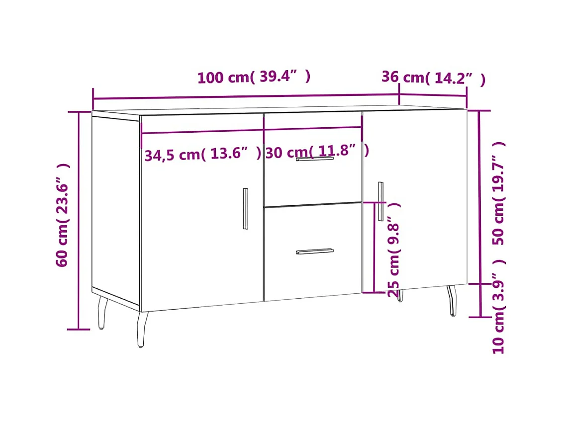 Aparador de madera de ingeniería gris Sonoma 100x36x60 cm