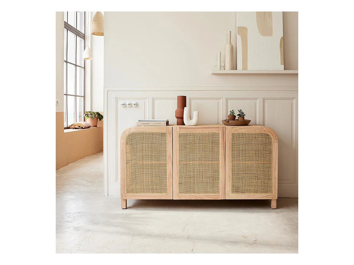 Aparador de madera de mindi maciza y rejilla de 150 cm
