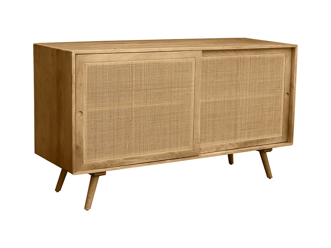 Aparador de madera maciza de mango y ratán con 2 puertas correderas 135 cm ACANGE