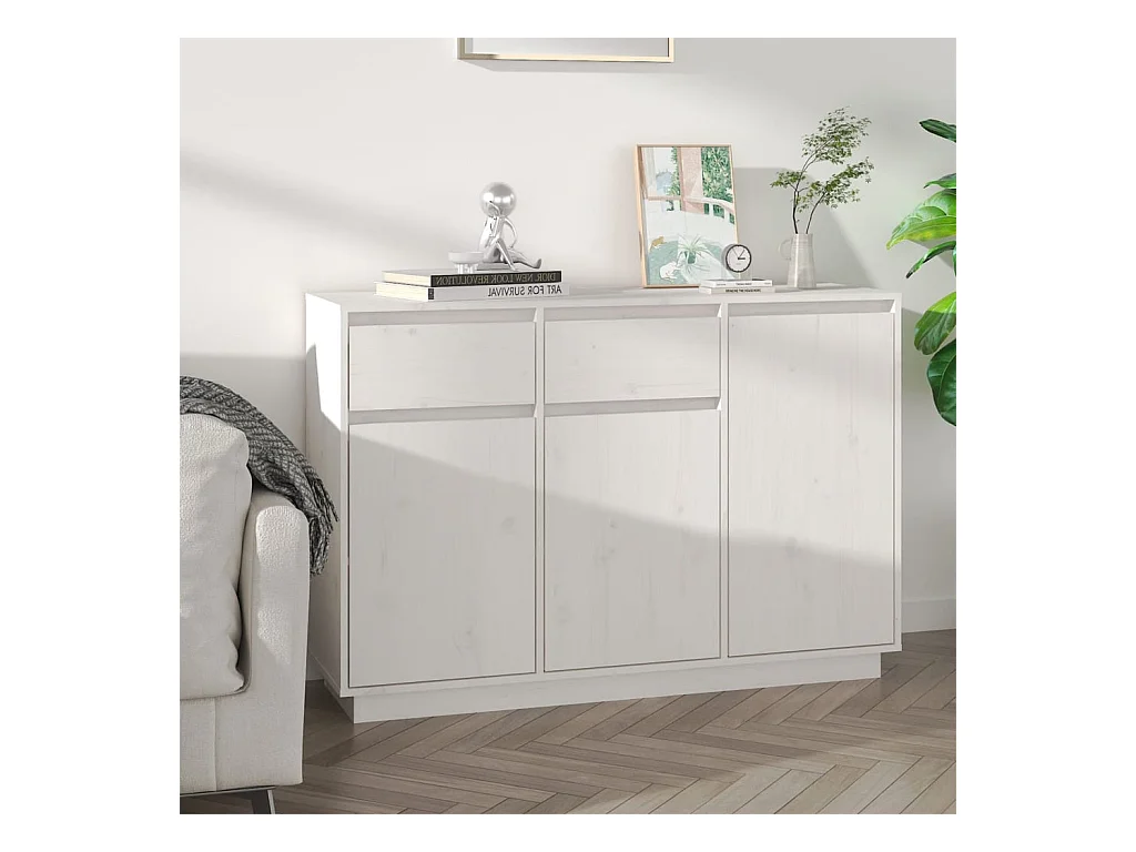 Aparador de madera maciza de pino blanco 110x34x75 cm ES81960