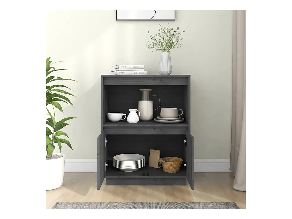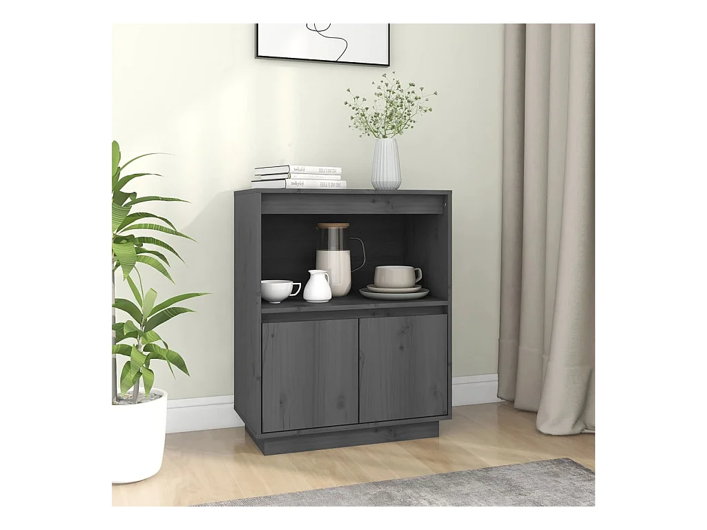 Aparador de madera maciza de pino gris 60x34x75 cm ES59489