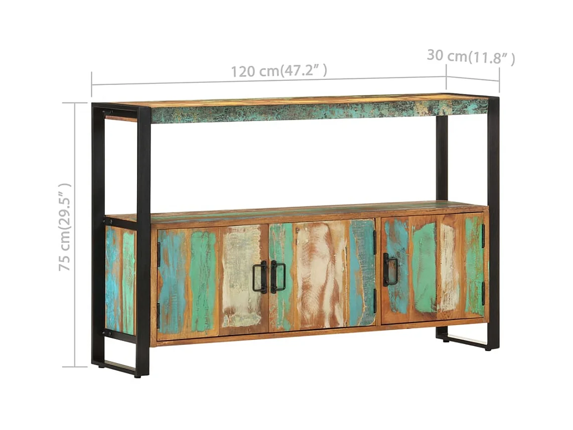 Aparador de madera maciza reciclada 120x30x75 cm
